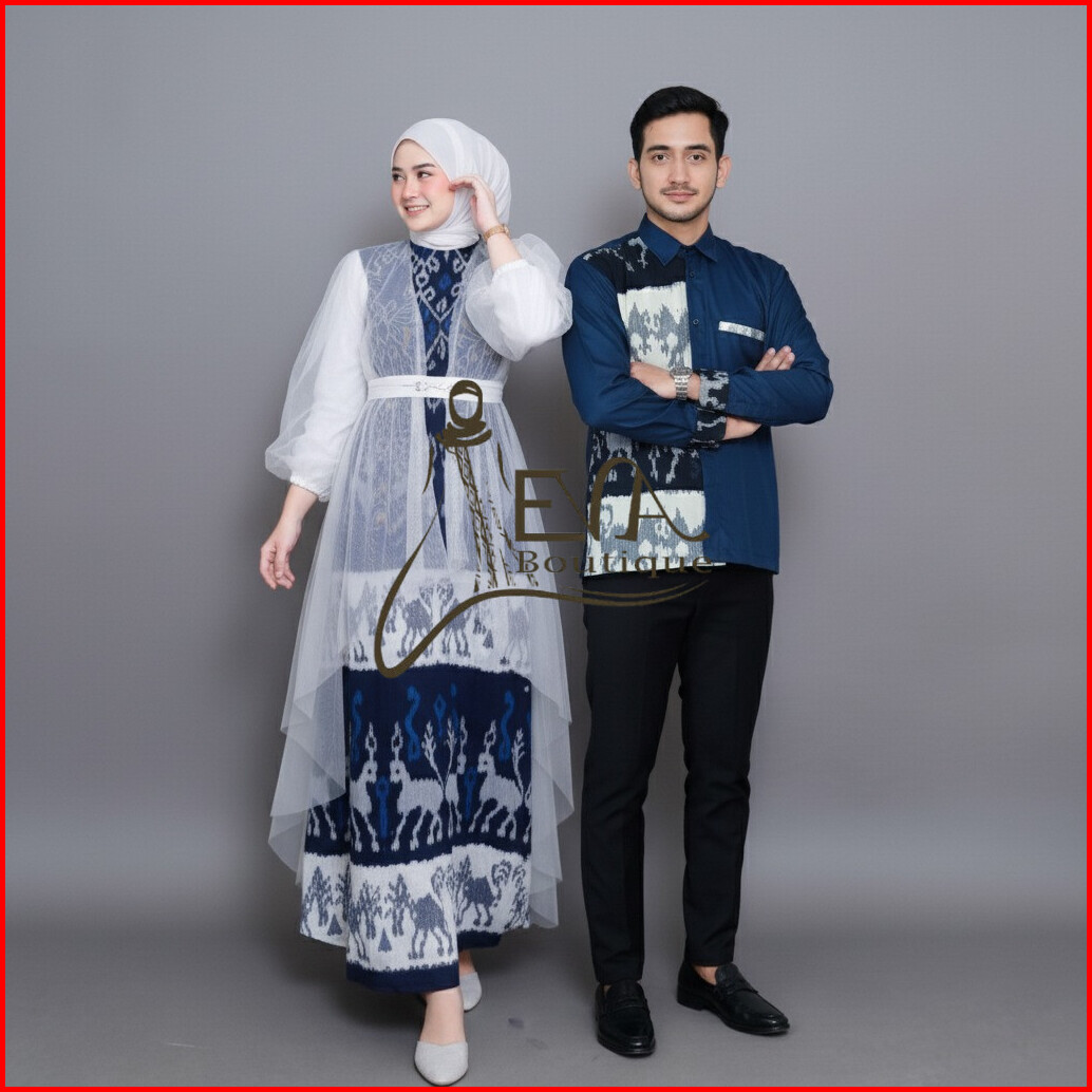 Evaboutique-maripossa Baju Tenun Set Couple Batik Kondangan Sarimbit Lebaran Pasangan Keluarga