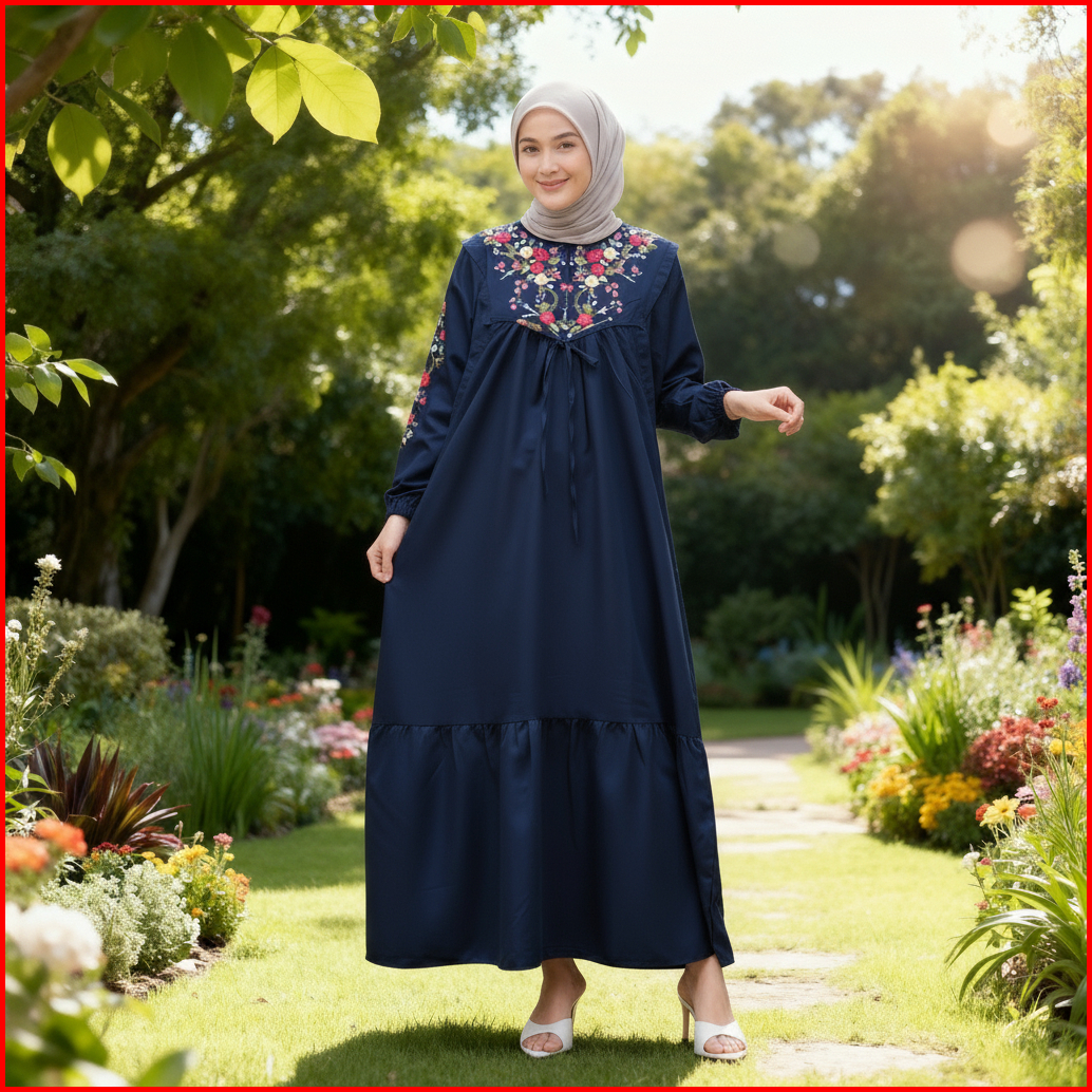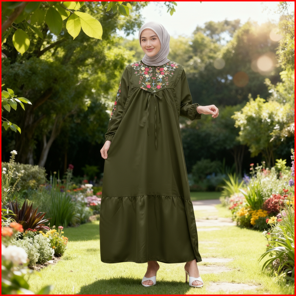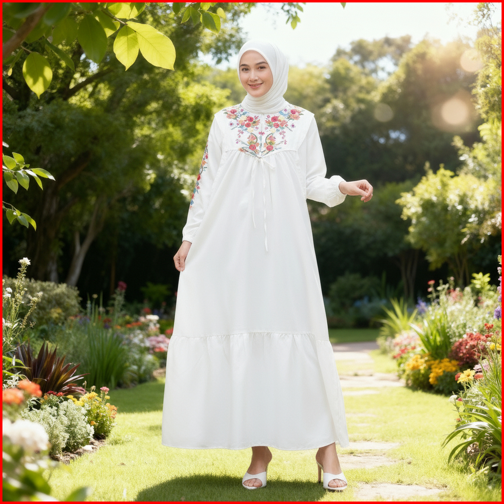 Amanda Maxi Dress Gamis Katun Bordir Katun Twill Adem Halus Nyaman Tidak Menerawang Gamis Abaya Pesta Kondangan Mewah El