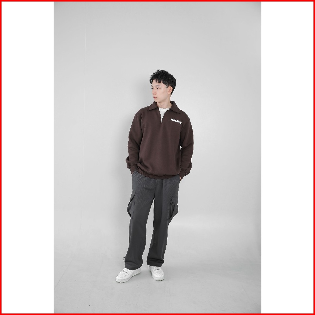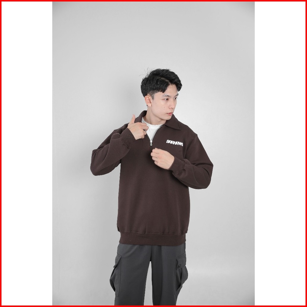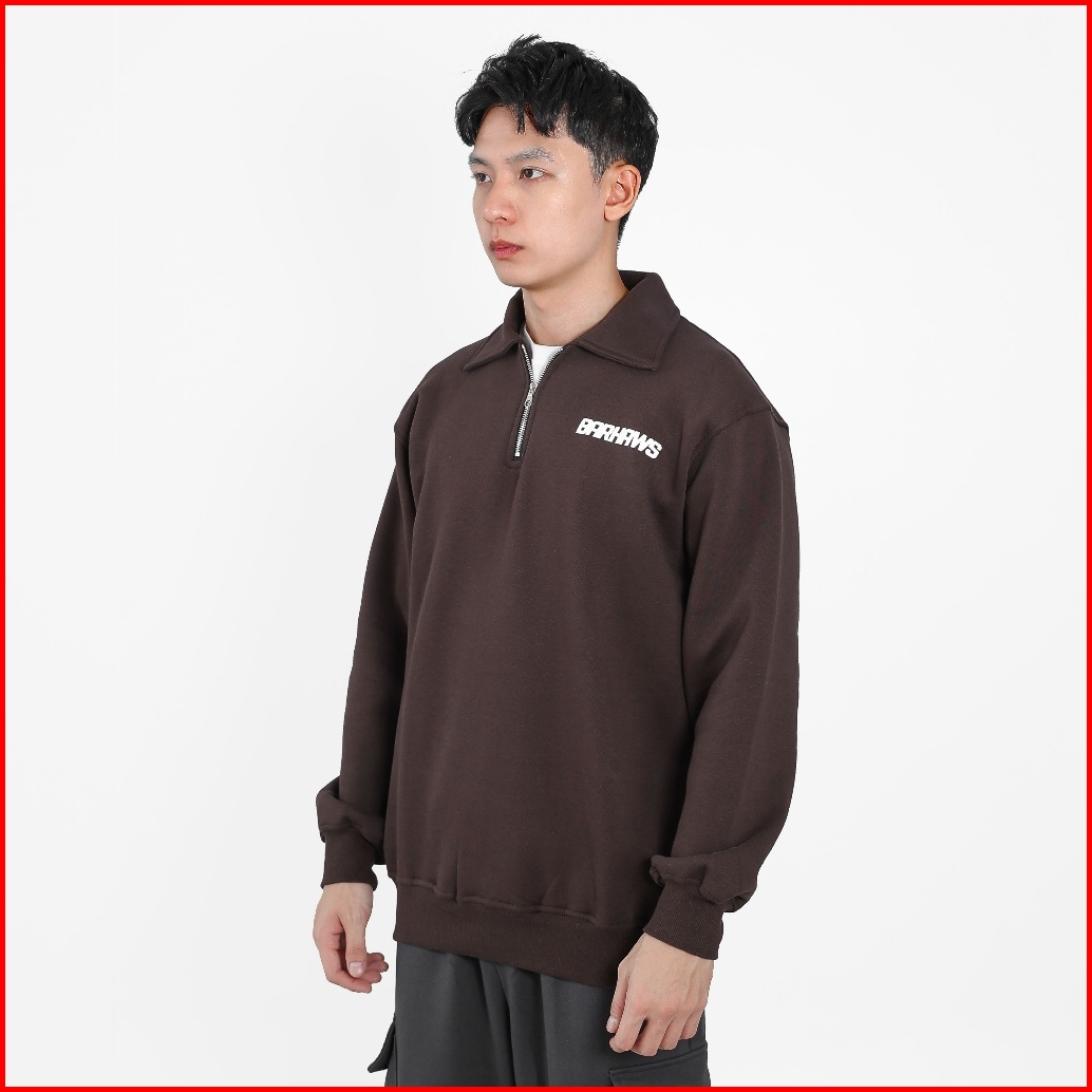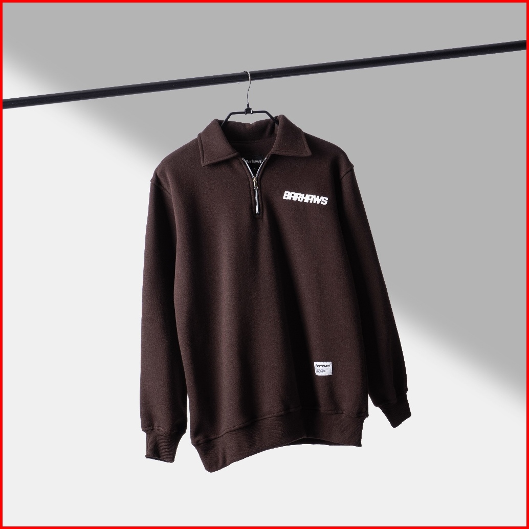 Barhaws - Sweater Half Zipper Rugby Simple Brown