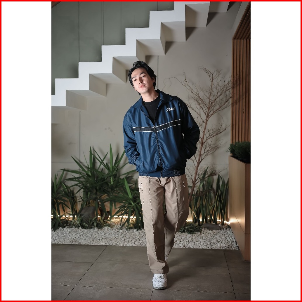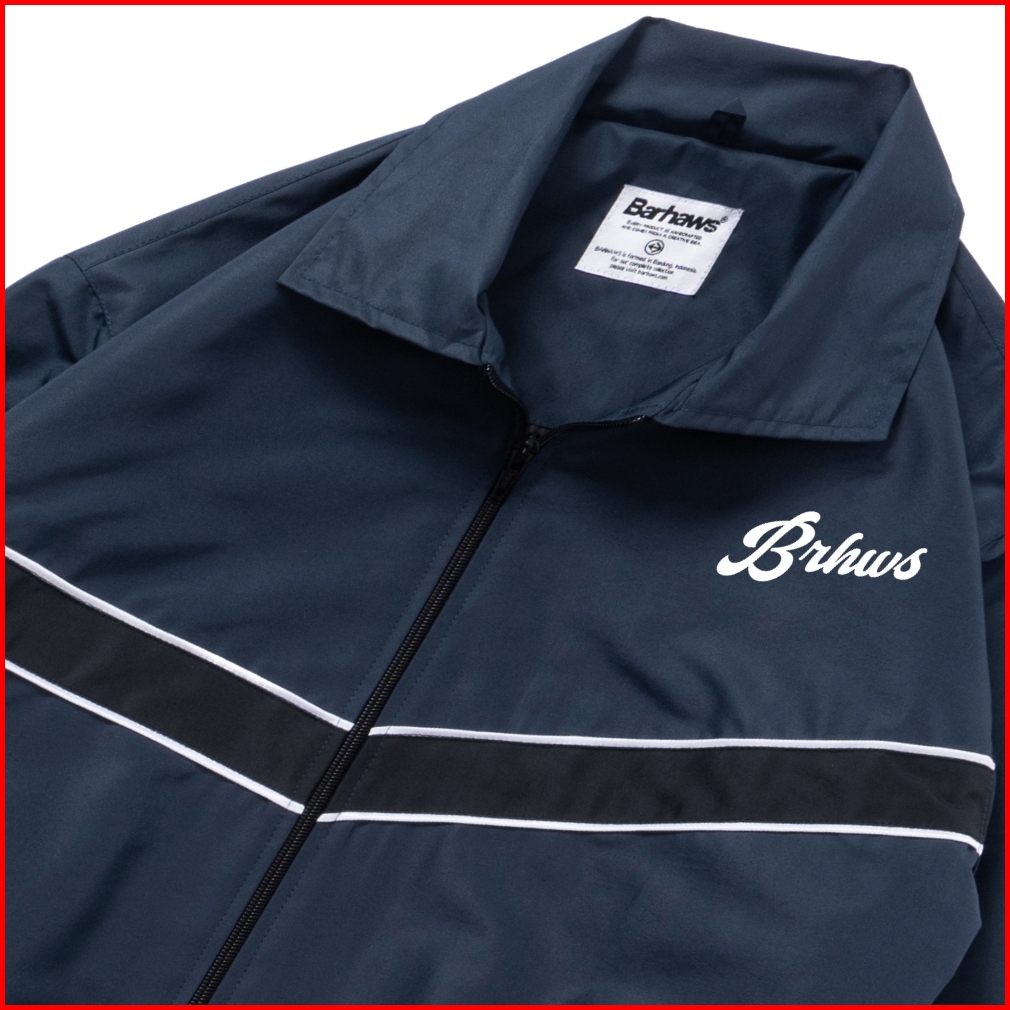Barhaws - Jacket Tracksuit Vintage Bahan Taslan Windproof Outer Pria Wanita Warna Navy