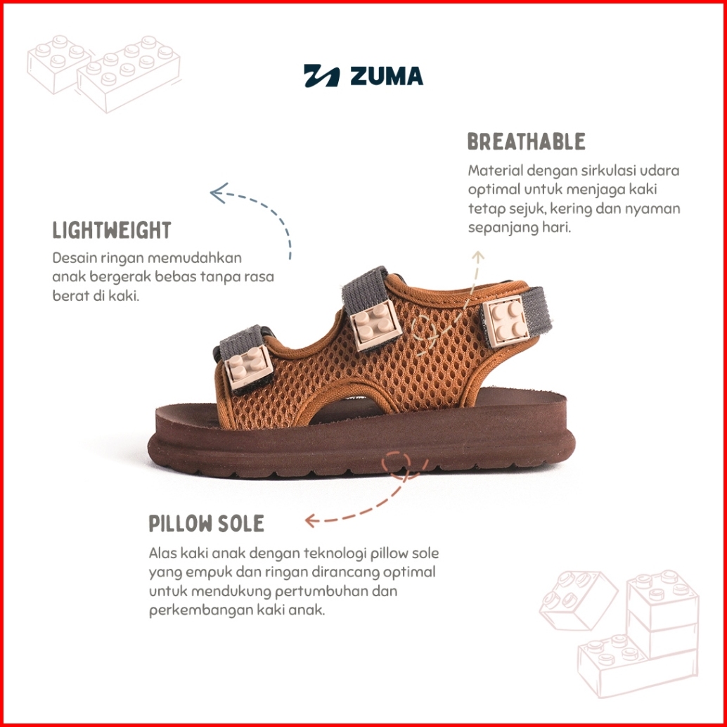Zuma Velcro Bricks 2 Cocoa Sandal Bayi Dan Anak Karet Tali Belakang Cokelat Kemerahan