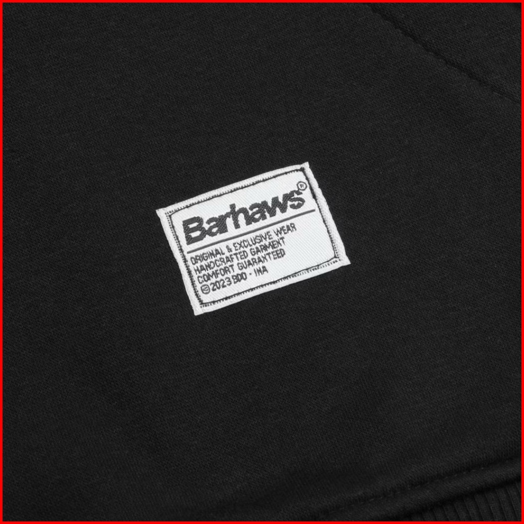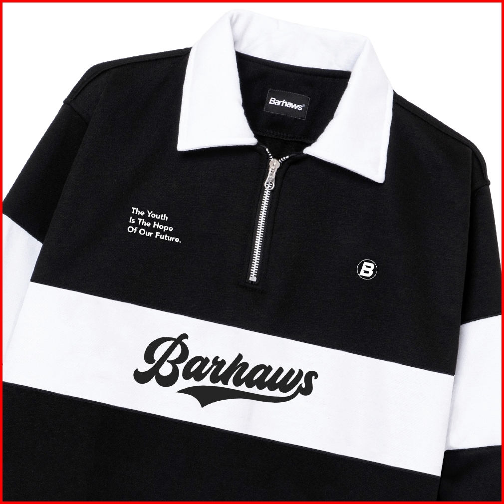 Barhaws - Sweater Half Zipper Rugby Hitam Kombinasi Putih