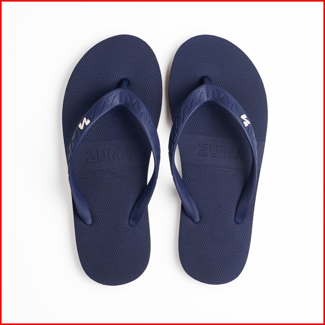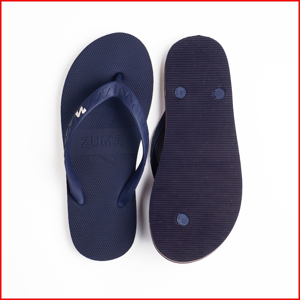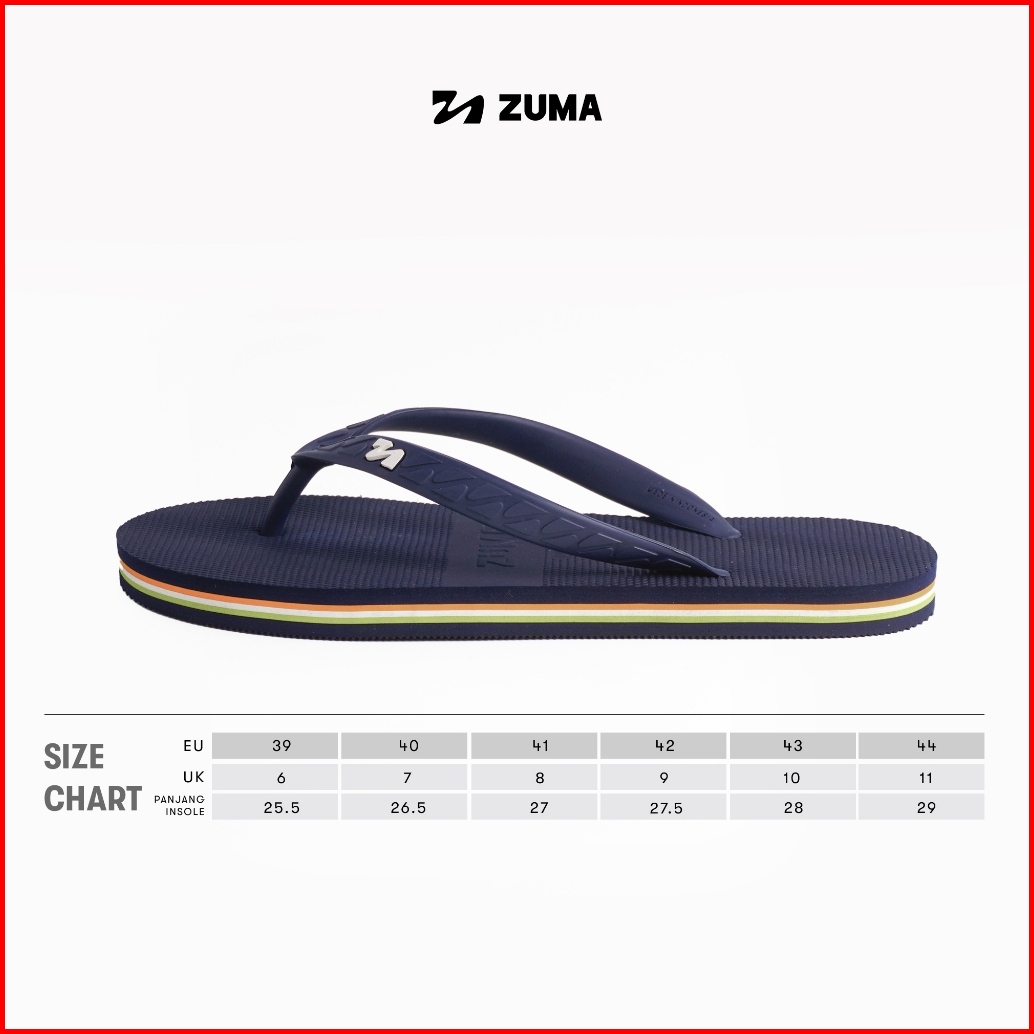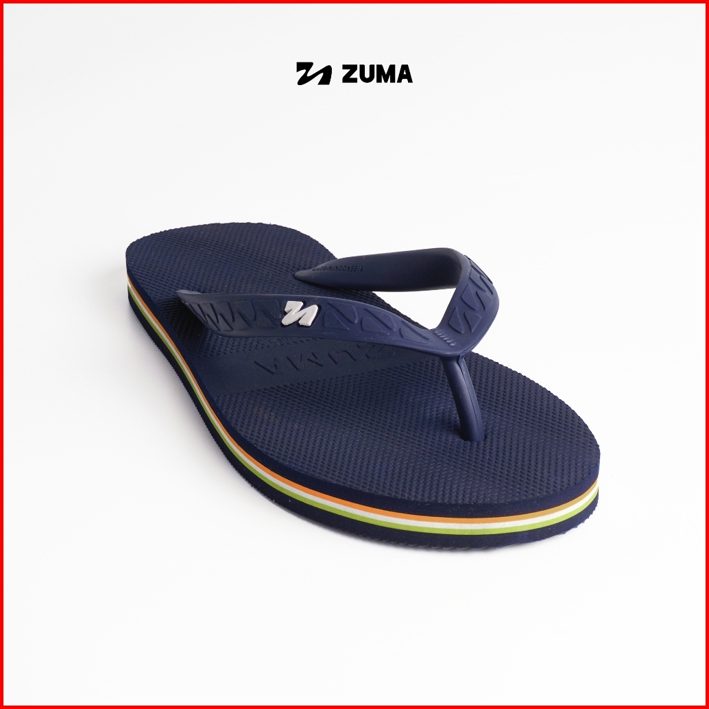 Zuma Men Stripe 2 Orange Green Sandal Jepit Pria Karet Polos Biru Navy Oranye Hijau