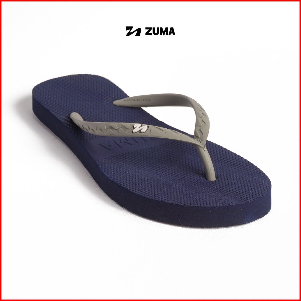 Zuma Women Classic 23 Navy Grey Sandal Jepit Wanita Karet Polos Biru Tua Abu-abu
