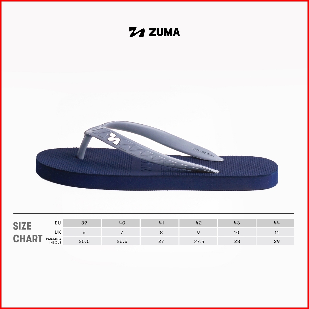 Zuma Men Classic 24 Navy Grey Sandal Jepit Pria Karet Polos Biru Tua Abu-abu