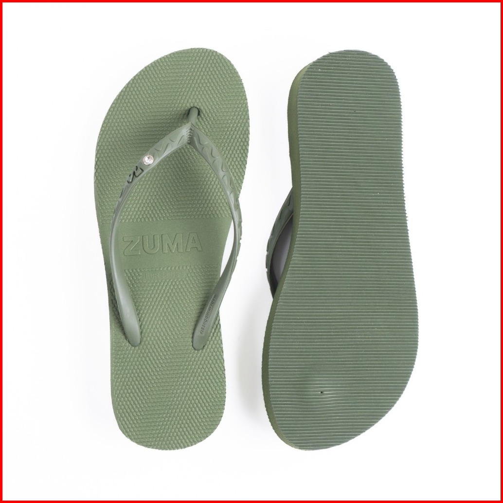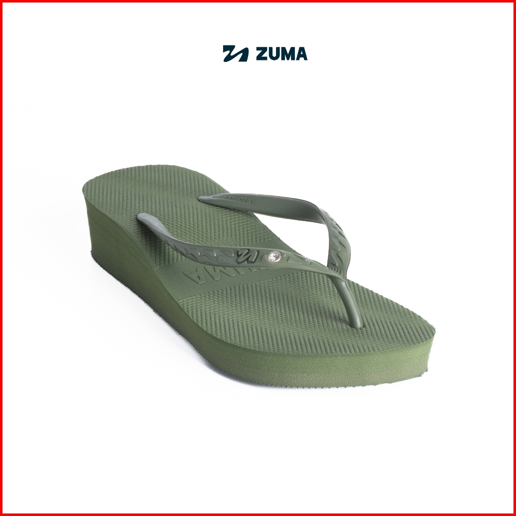 Zuma Women Tiffany 12 Olive Sandal Jepit Wanita Wedges Karet Polos Hijau Olive