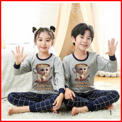Dealshop Baju Tidur Anak Untuk Umur 1 - 10 Tahun Motif Ballerina Cappucinna Setelan Anak Laki - Laki Stelan Anak Perempu