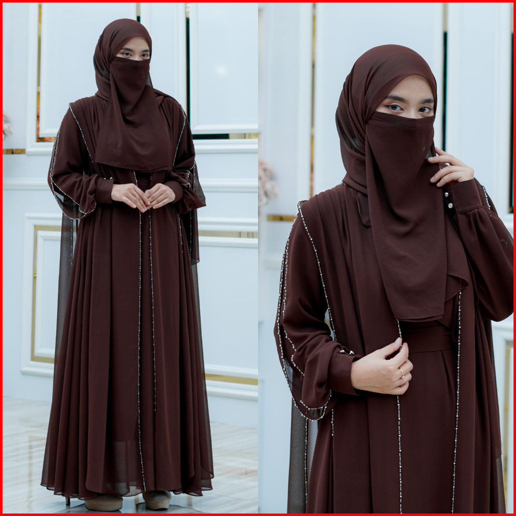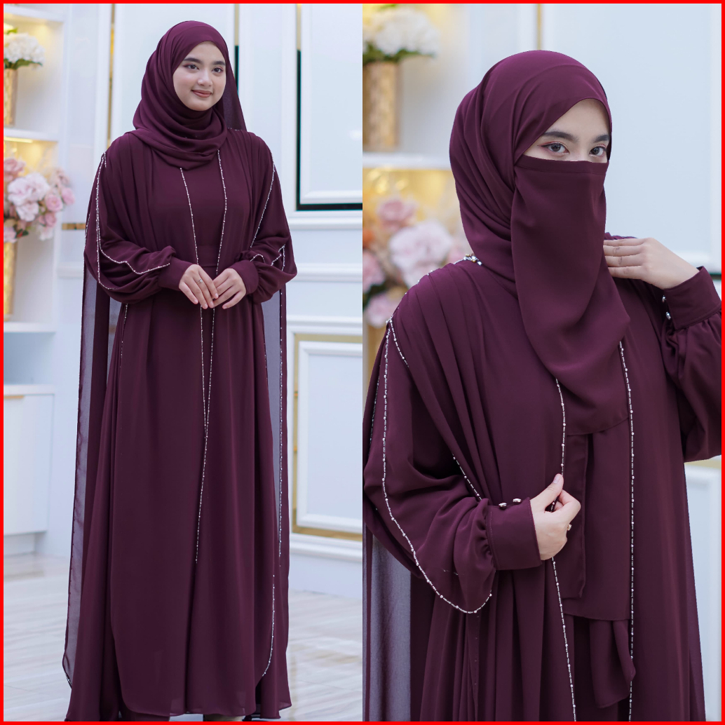 Rades - Mecca Abaya Ceruty Babydoll Set Hijab Pashmina Dan Cadar Full Payet Mewah Elegan Gamis Wanita Dewasa Kekinian Le