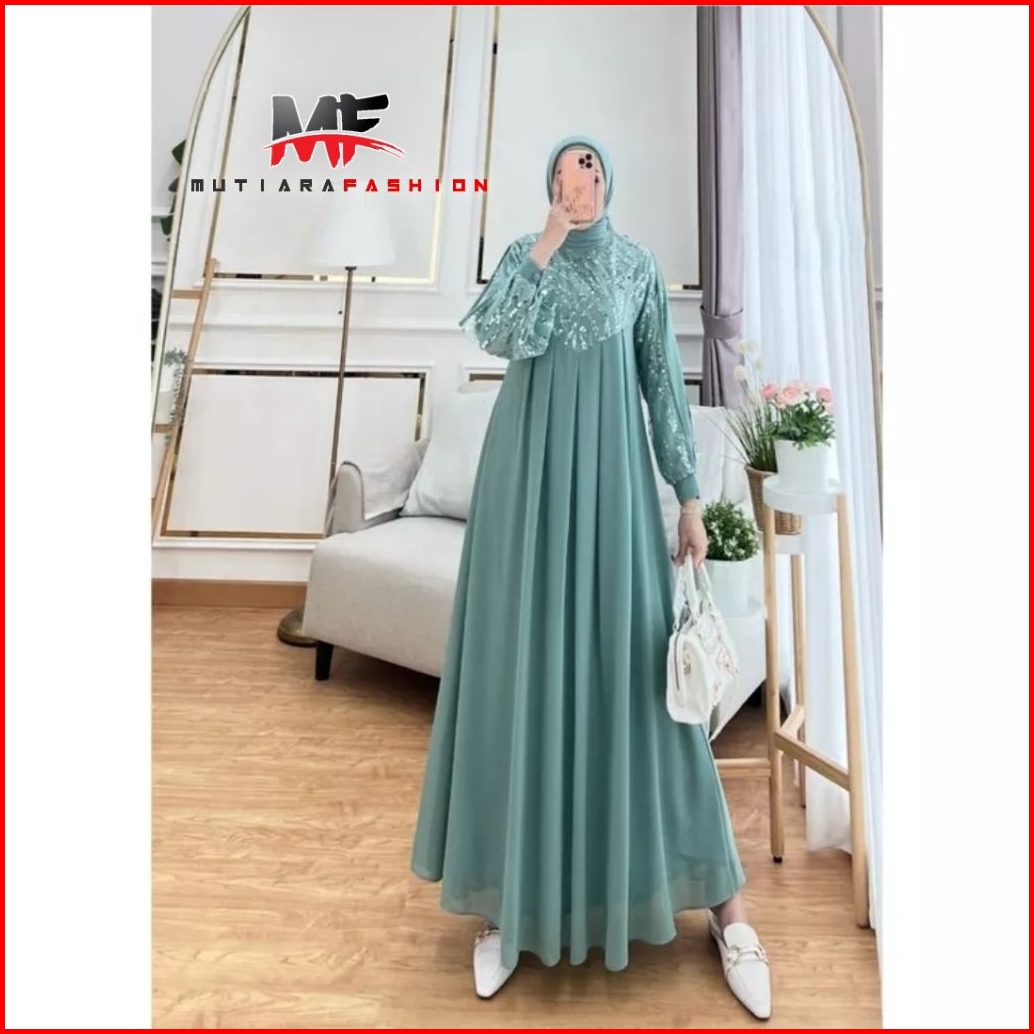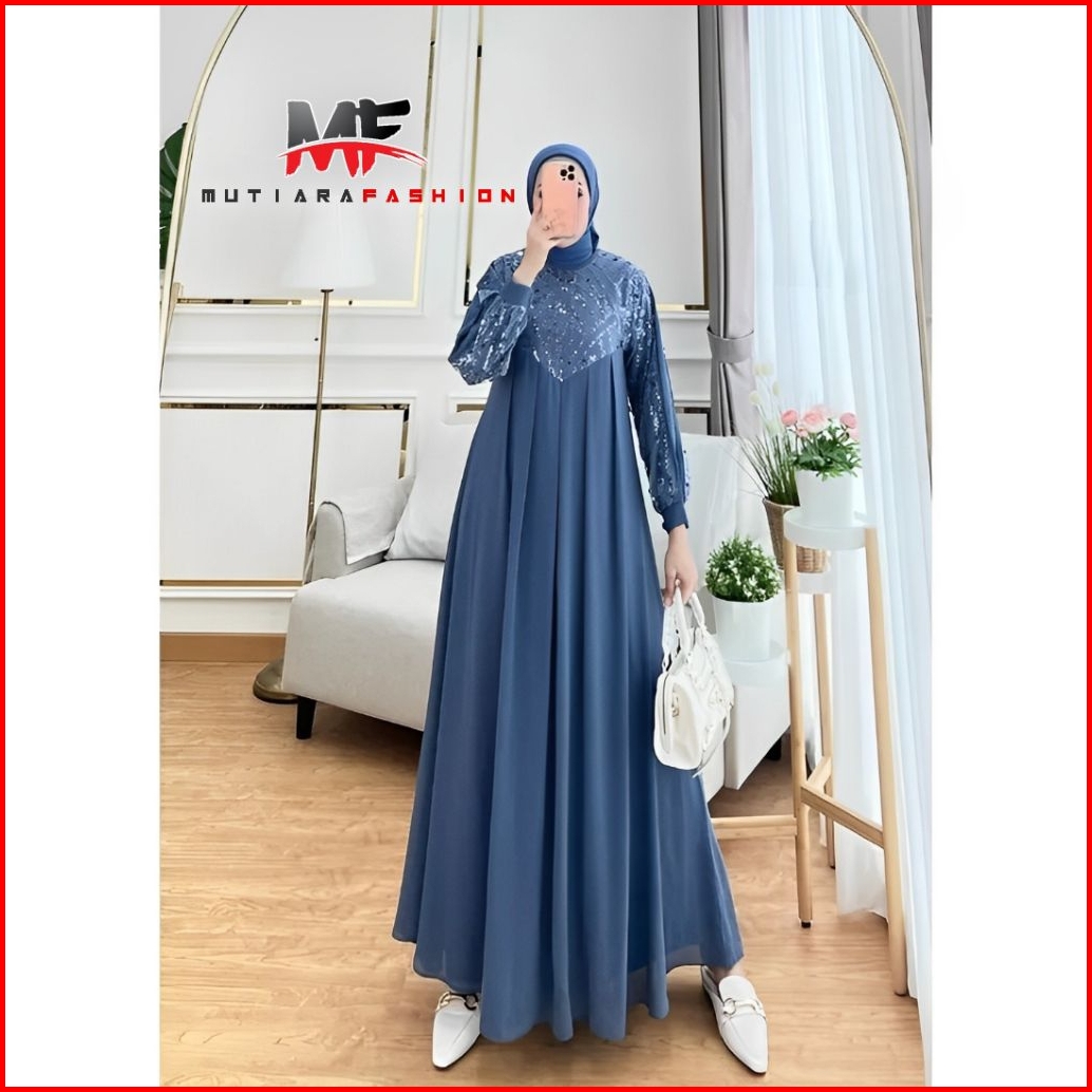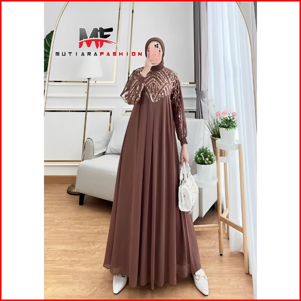 Mutiara Fashion Gamis Dress Lebaran Brukat Shimmer Metalik Premium Quality Terbaru Mutiara Fashion