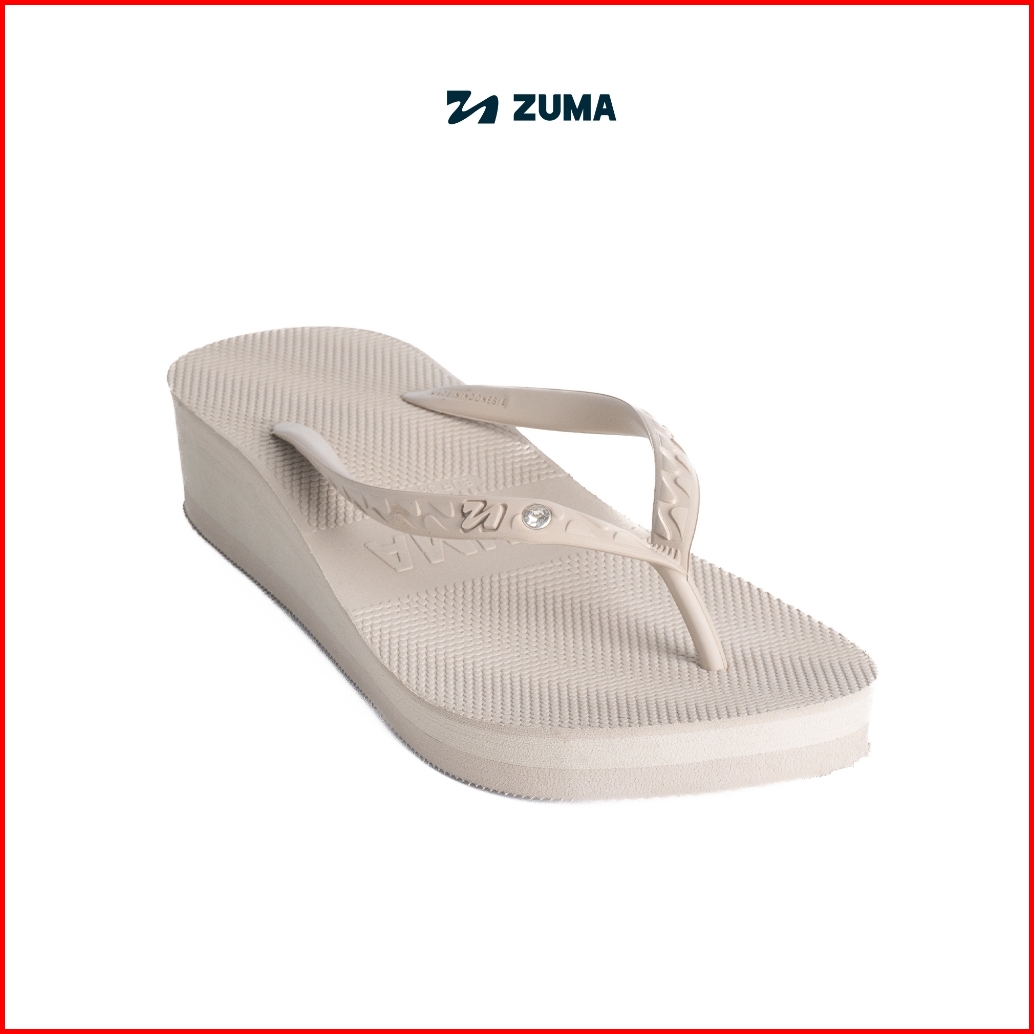 Zuma Women Tiffany 11 Sand Sandal Jepit Wanita Wedges Karet Polos Krem