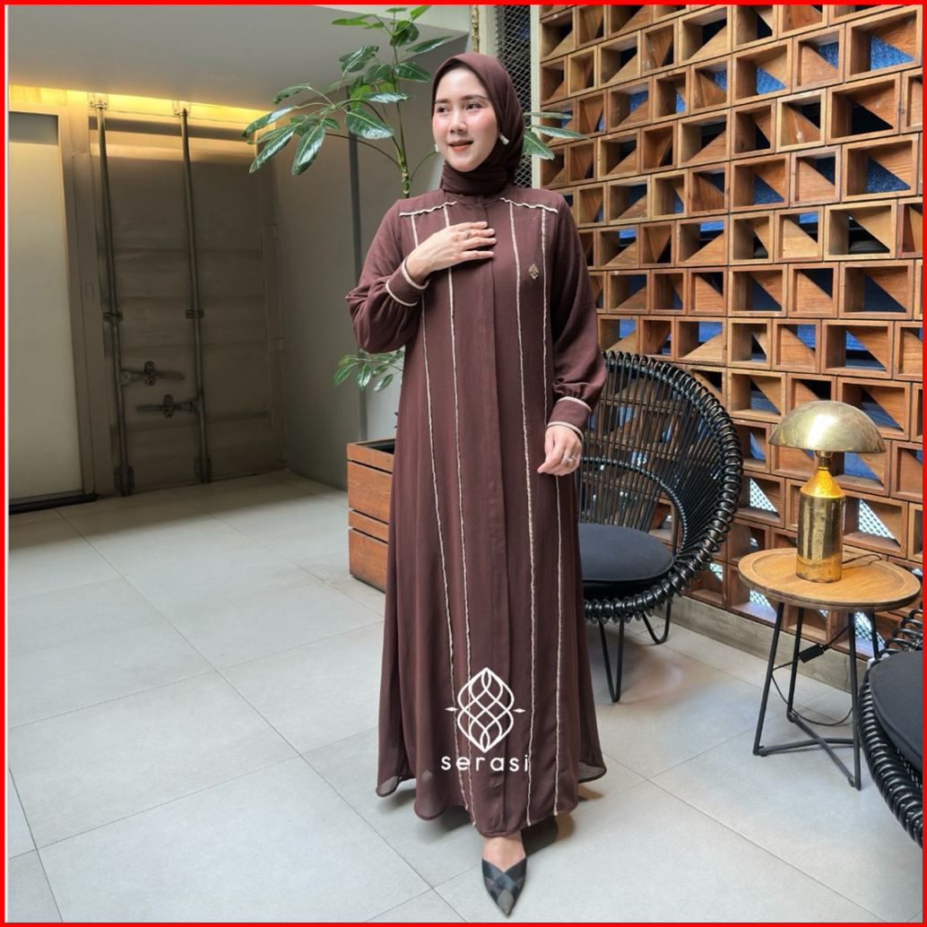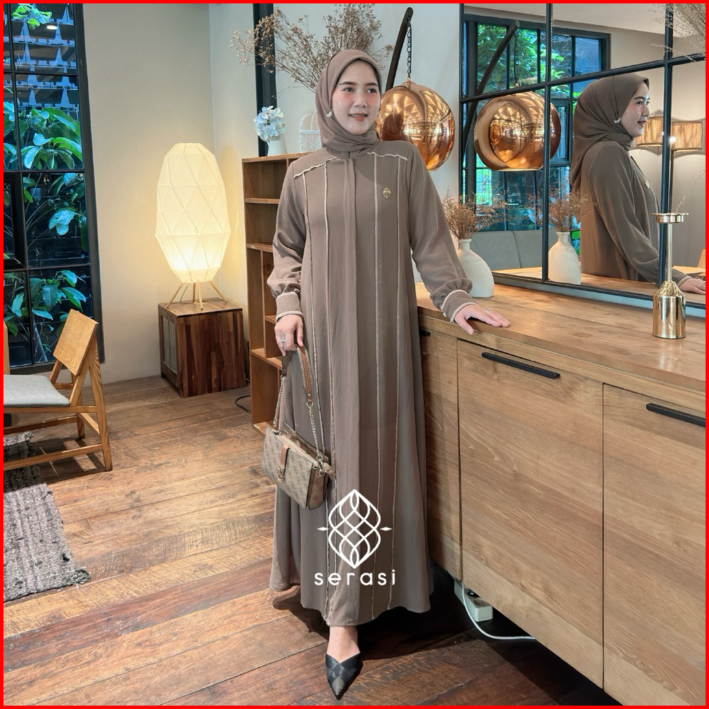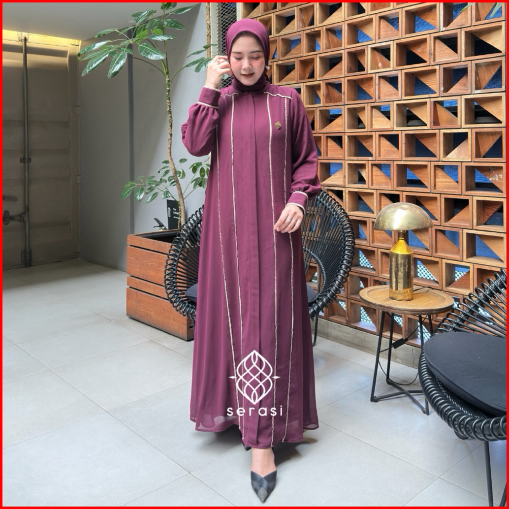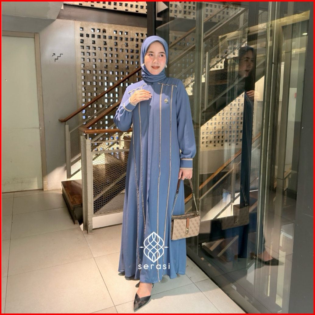 Serasi Levina Dress Set Hijab Ceruty Babydoll Armany Premium Gamis Lebaran Abaya Modern Wanita Muslim Syari Mewah Kondan