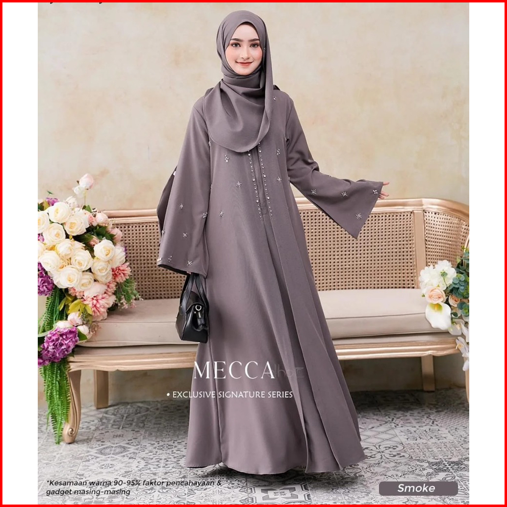 Mecca Dress Gamis Lebaran Viral Abaya Mewah Ceruty Babydoll Premium Full Puring Aksen Mutiara Payet