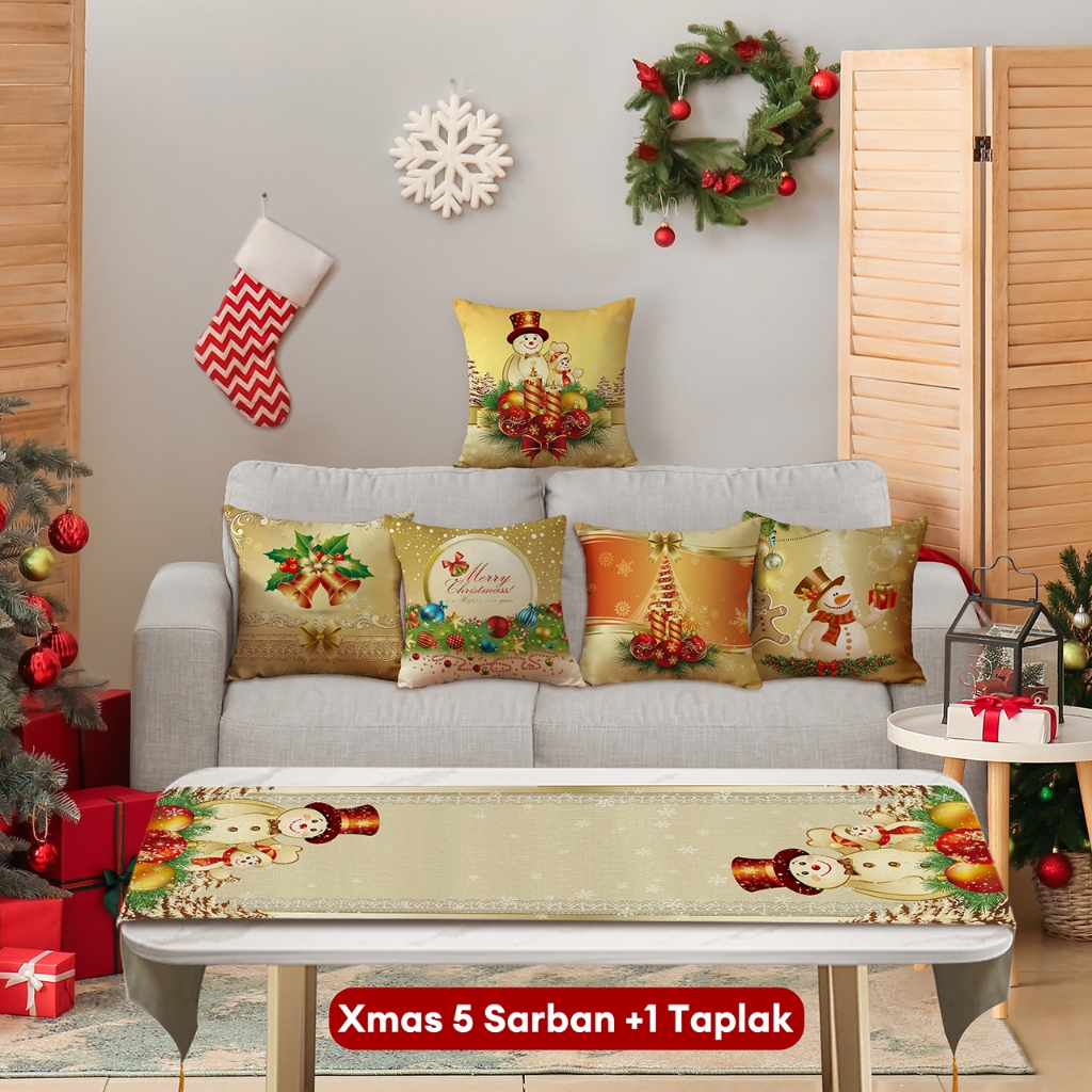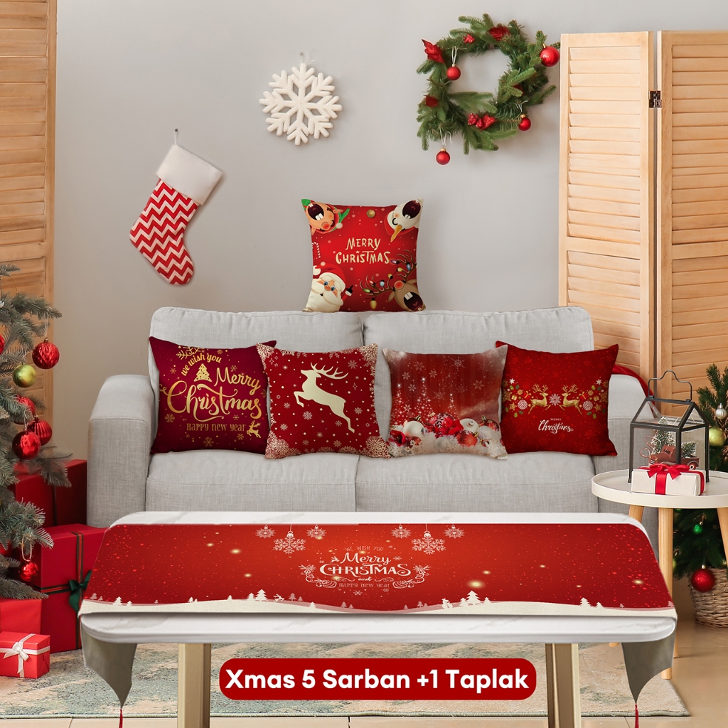 Natal 40x40 45x45 50x50 Sarung Bantal + Taplak Meja Setelan Dekorasi Rumah 6 Buah Hadiah Natal Christmas Xmas