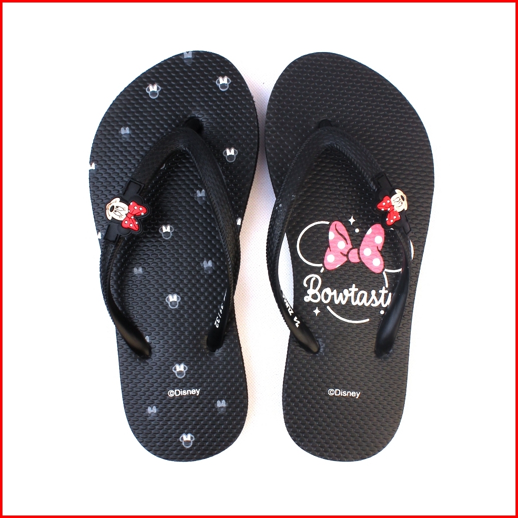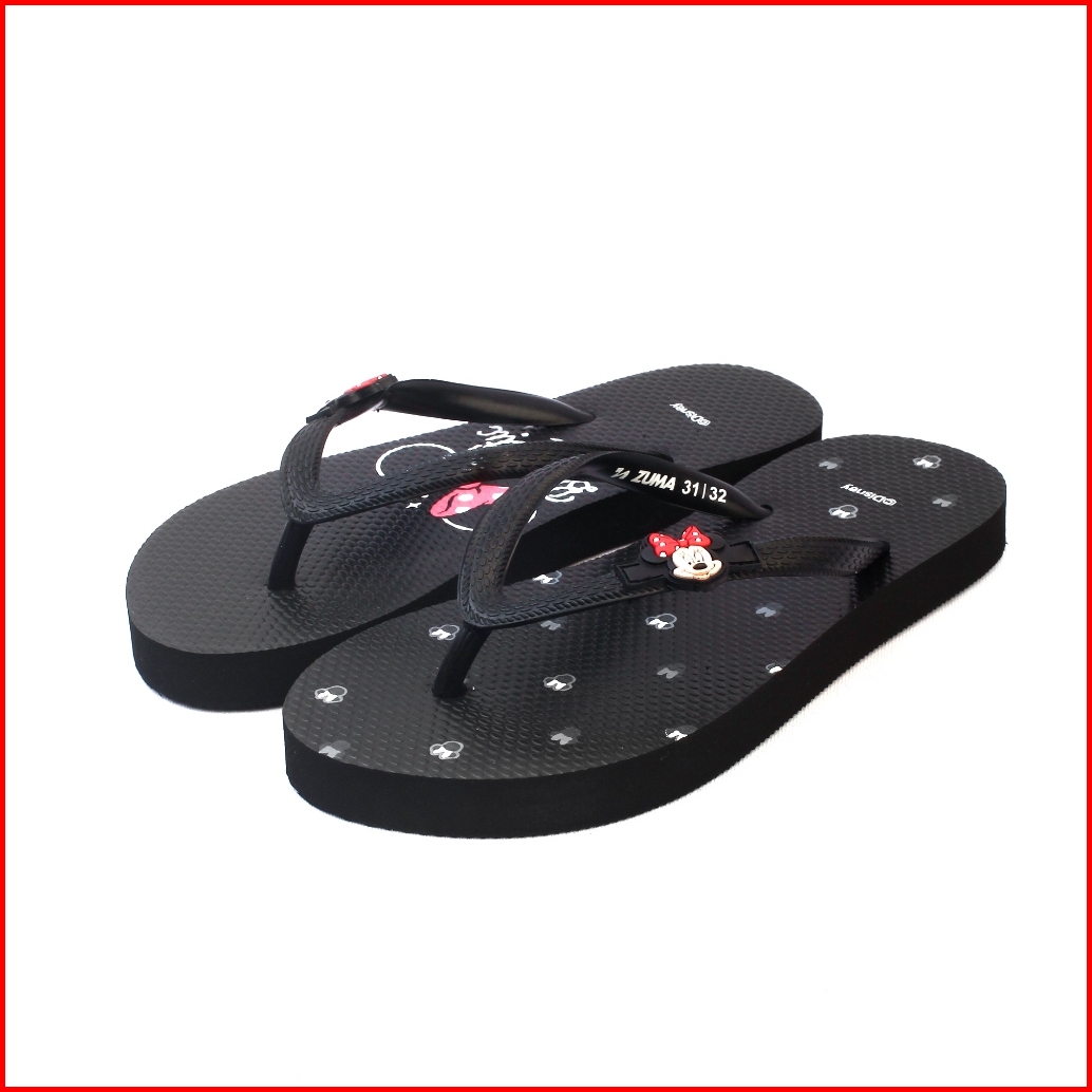 Minnie 1 Zuma Kids Girls Black Sandal Jepit Anak Perempuan Karet Karakter Hitam