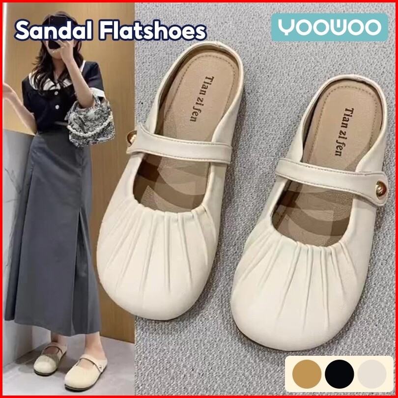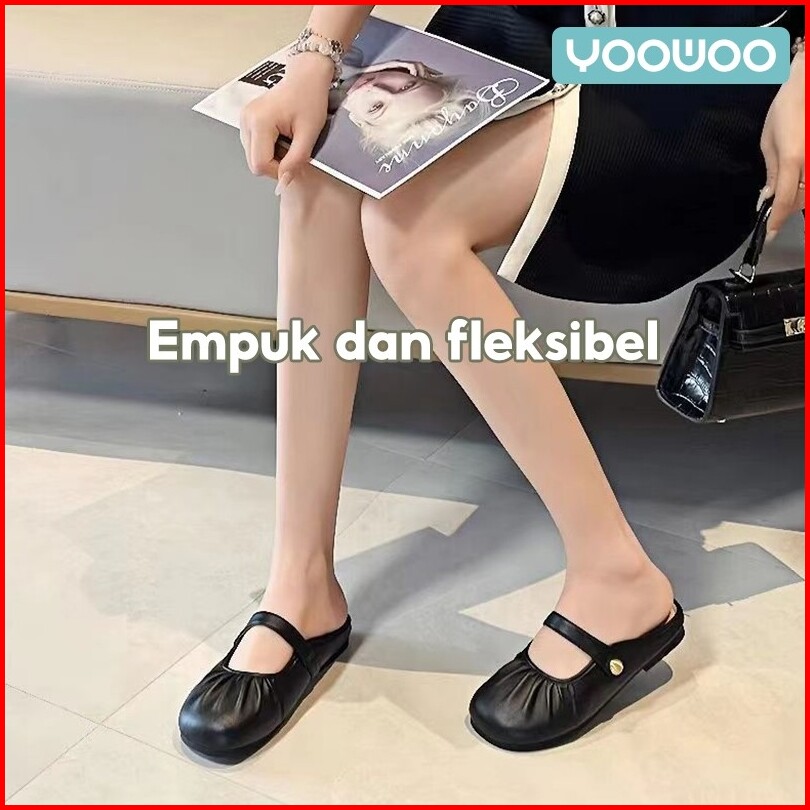 Yoowoo Sandal Slip On Wanita Flat Sandal Empuk Wanita Sandal Fashion Sandal Ujung Tertutup Sandal Fashion Korean Style