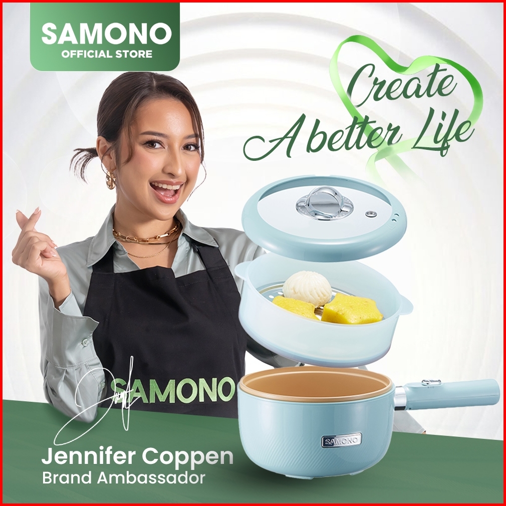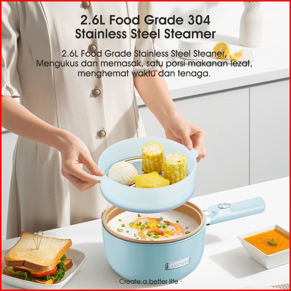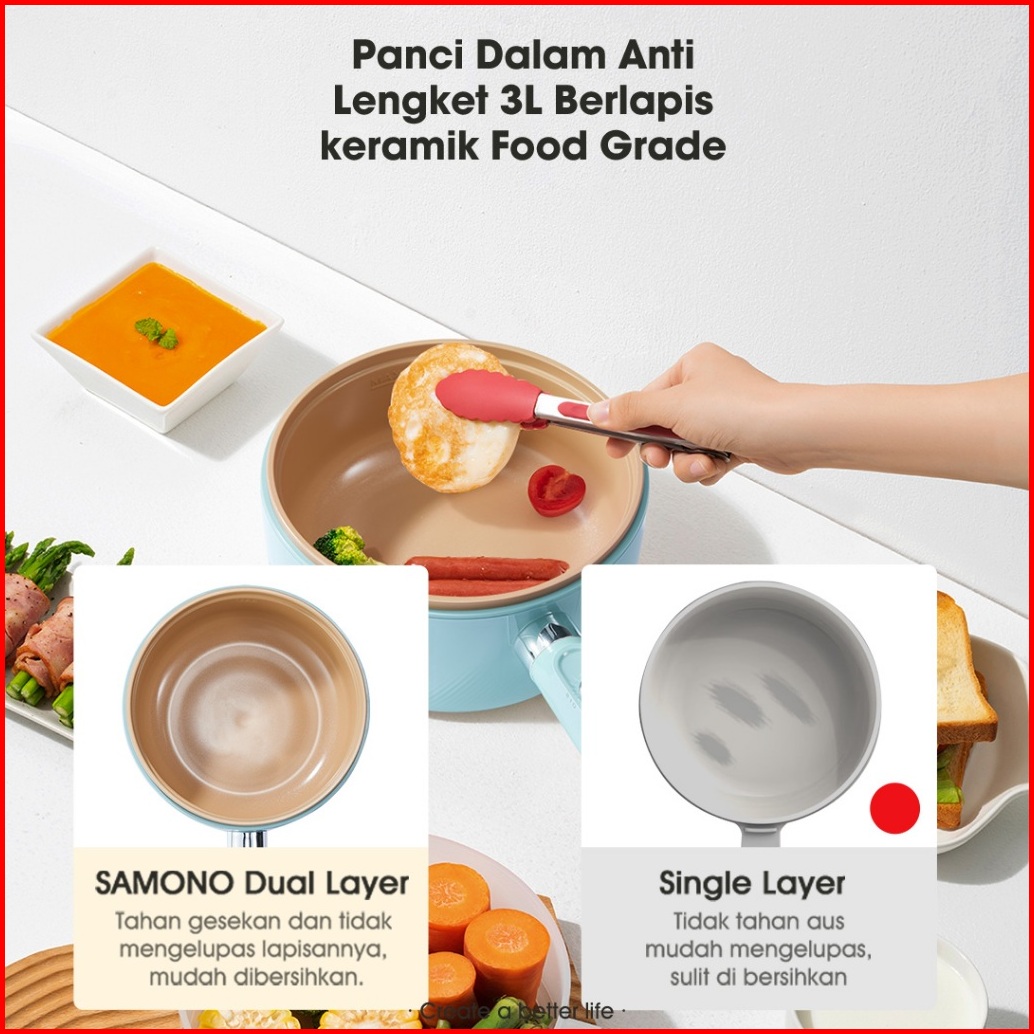 Samono Panci Listrik 3l Anti Lengket Glossy Design Low Watt Serbaguna Kukusan 2.6l Sw-dg06