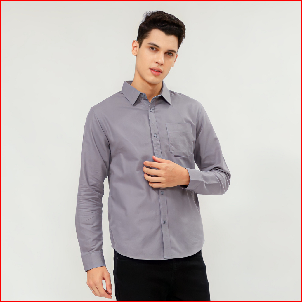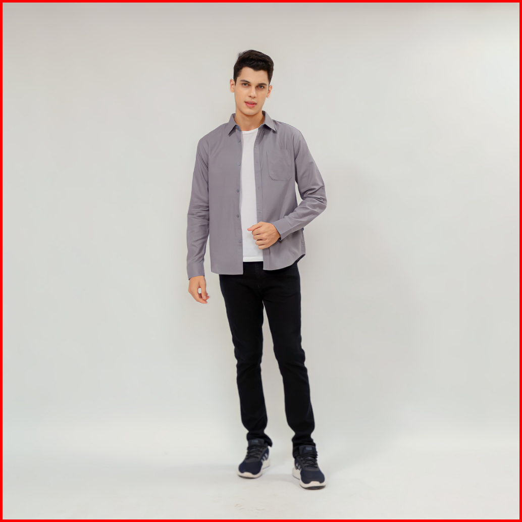 Casualuxe Kemeja Pria Lengan Panjang Polos Abu Tua Linen Softy Slimfit