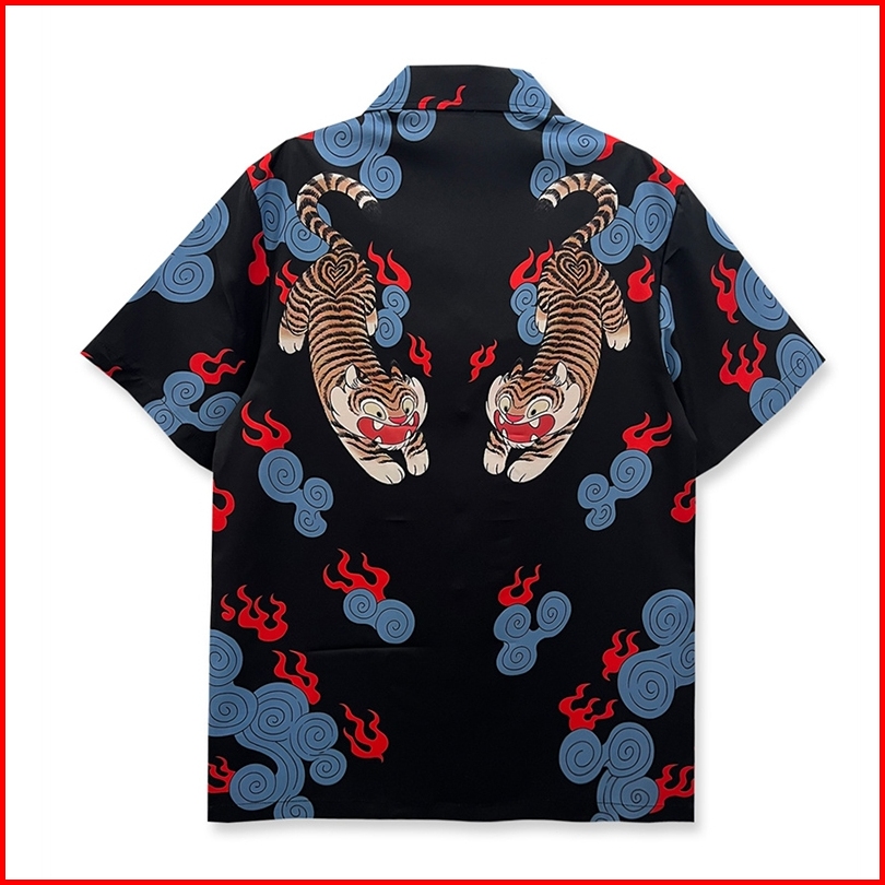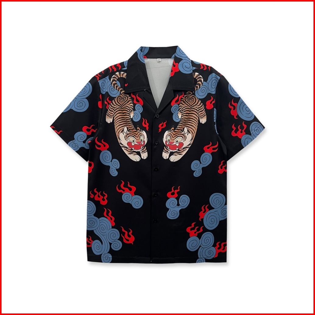 Dark Icon Tiger Kemeja Pria Lengan Pendek Kemeja Cowok Vintage Men S Shirts Streetwear Clothing