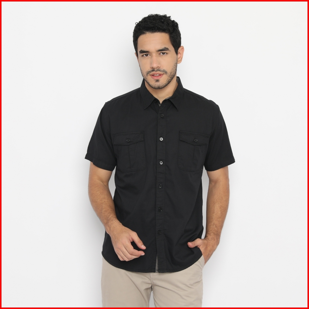 Police Kemeja Polos Cotton Kantong Dua Regular Fit Pria