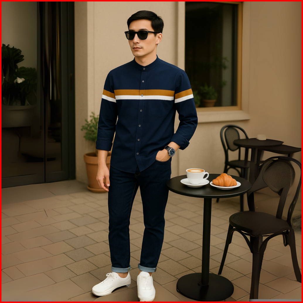 Ryusei Kemeja Pria Lengan Panjang Atsuya Navy