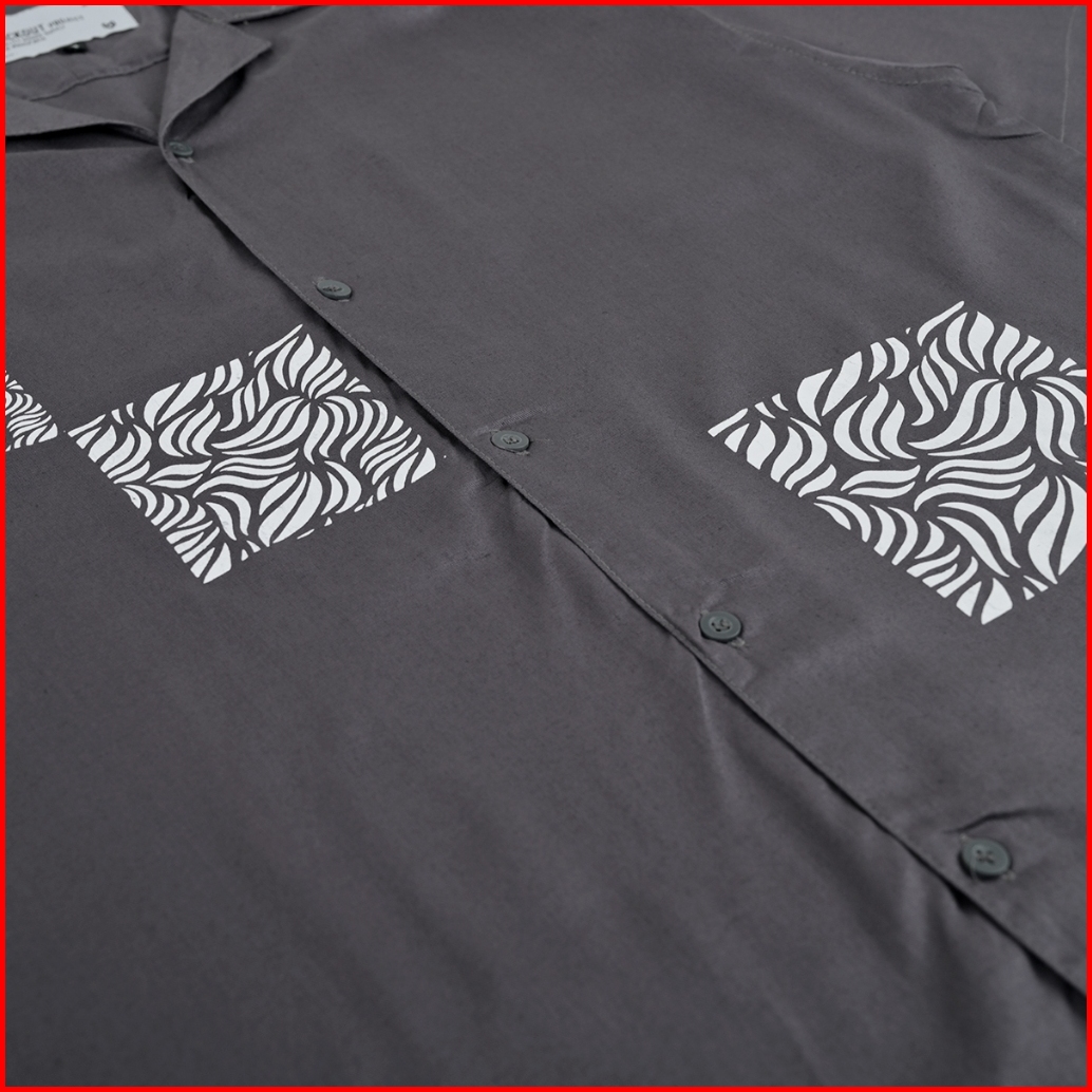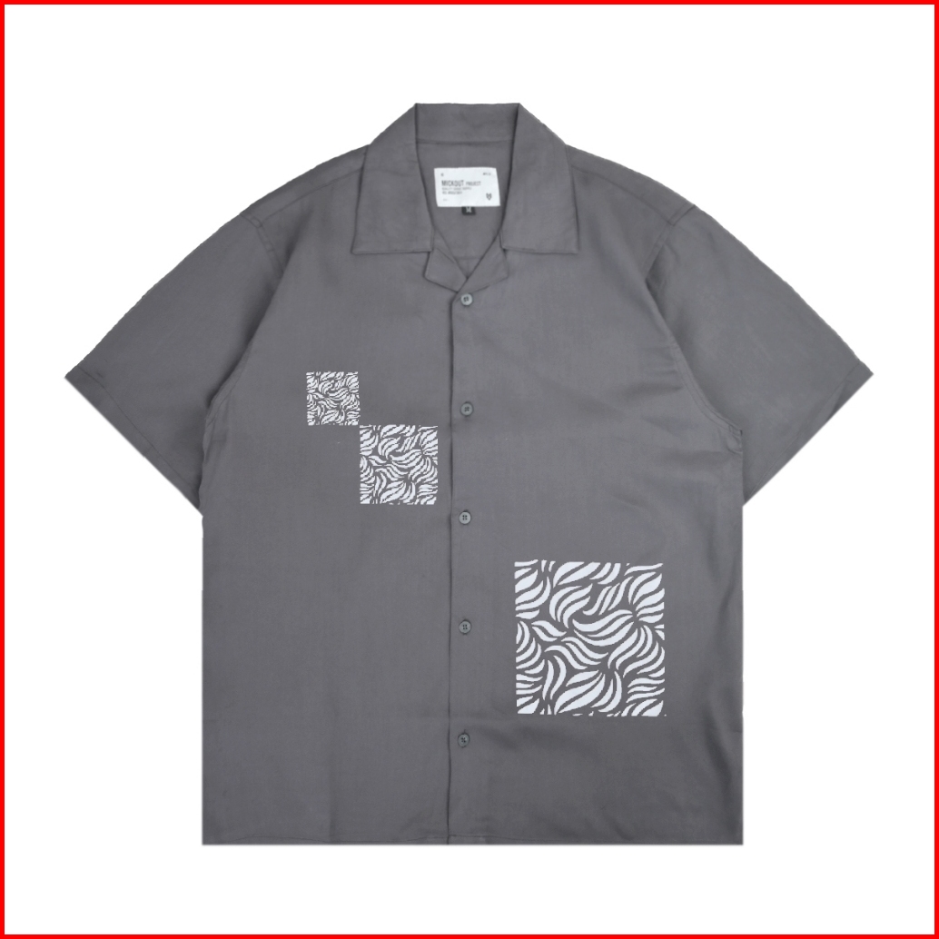 Mickout Blodau Casual Shirt - Kemeja Kasual Print Pria Katun Rayon Relaxed Fit Lengan Pendek - Grey