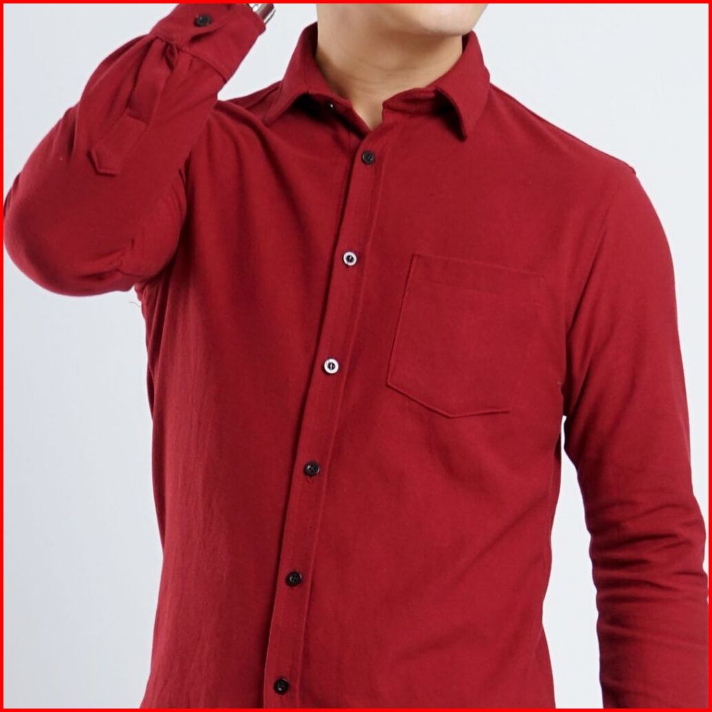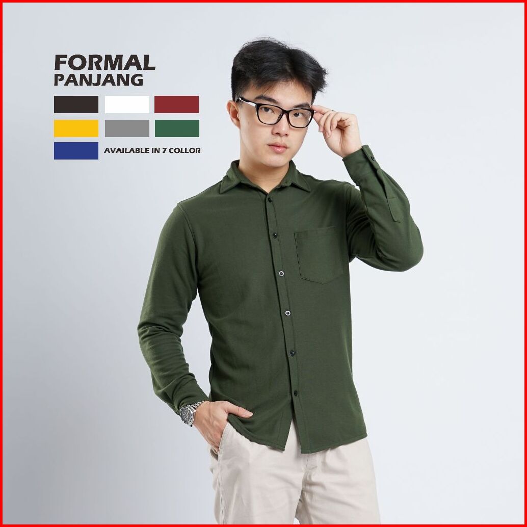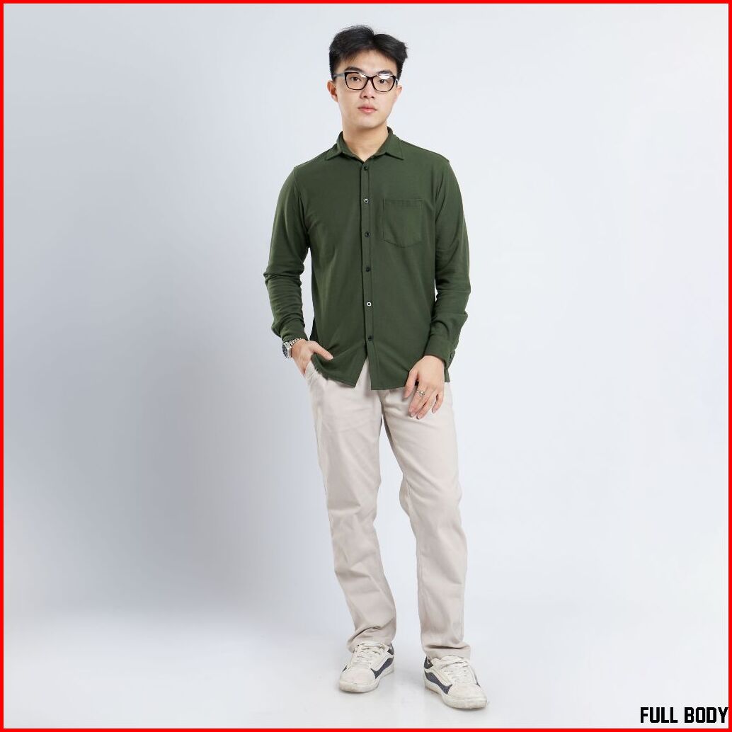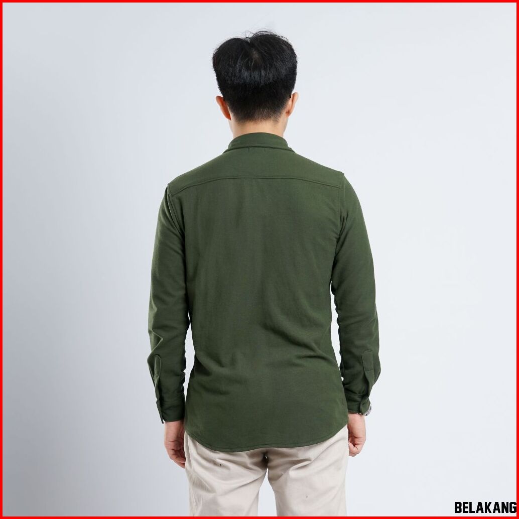 Yomen Kemeja Polos Pria Pique Lengan Panjang Army