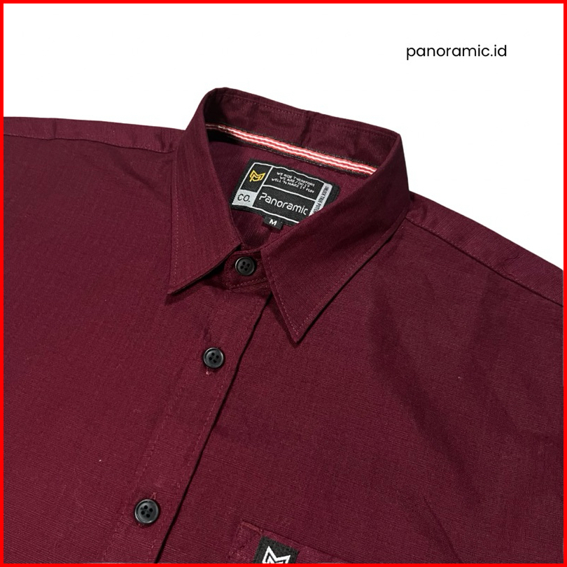 Panoramic - Short Sleeves Shirt Big Size Maroon Kemeja Polos Pria Lengan Pendek Casual Jumbo