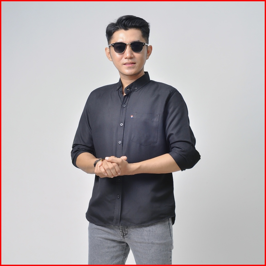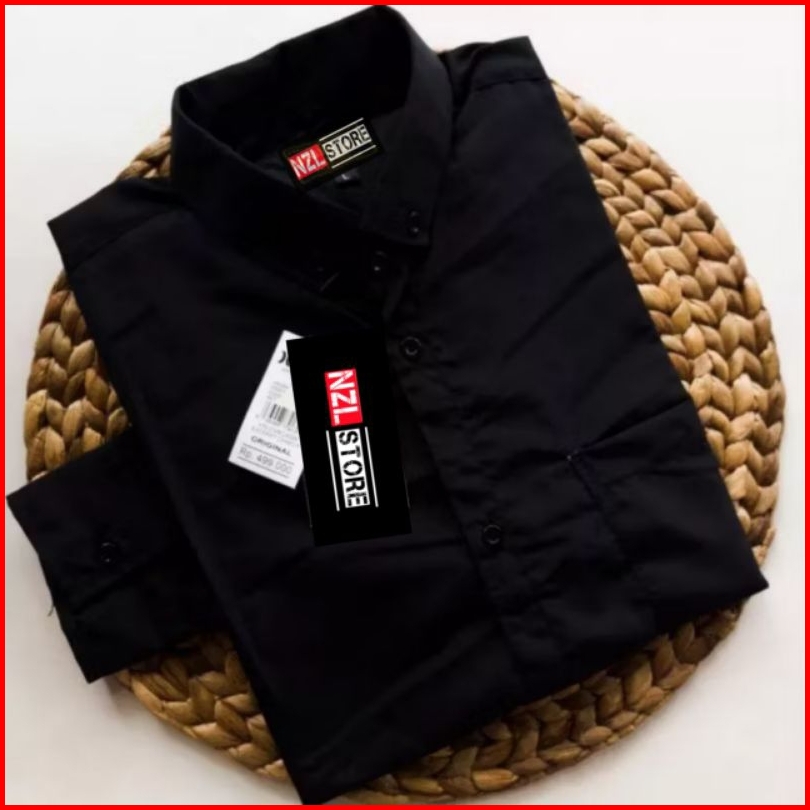 Nzl - Kemeja Pria Basic Polos Panjang Hitam