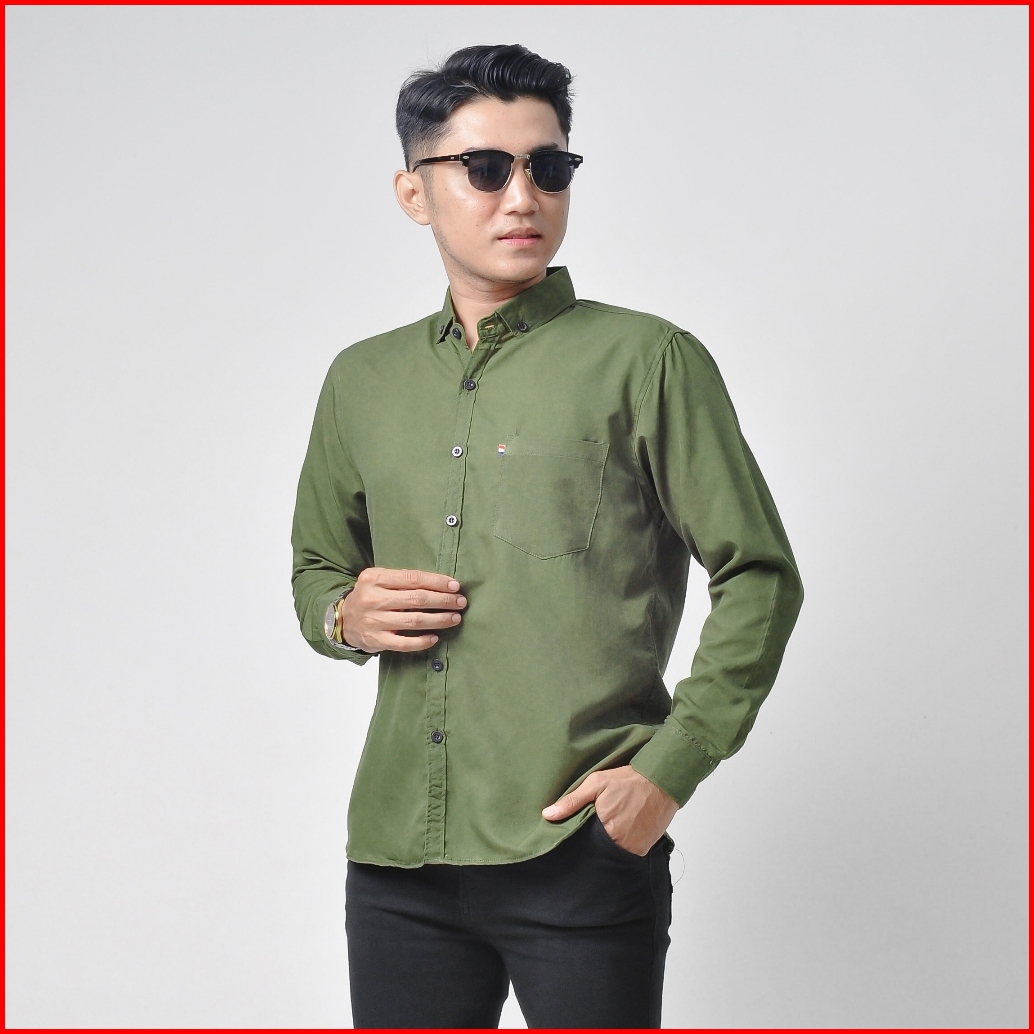 Nzl - Kemeja Cowok Polos Lengan Panjang Basic Slimfit