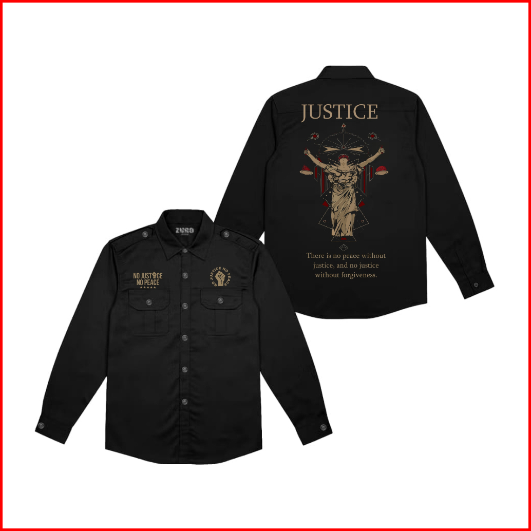 Zuro - Workshirt Lengan Panjang Justice Forgivness Kemeja Kerja Pdh Warna Hitam Pdl Kemeja Pria Wanita
