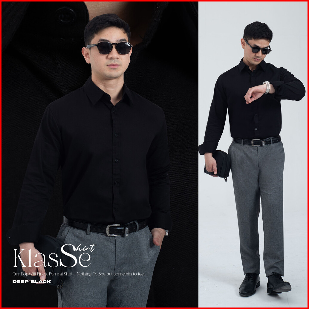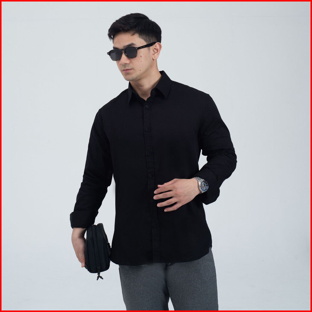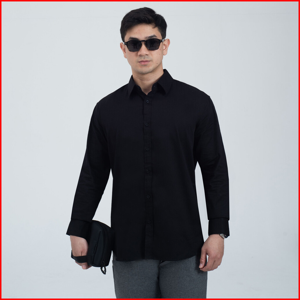 Kemeja Polos Pria Woodcutter Klasse Formal Basic Shirt Longsleeve - Black Hitam Lengan Panjang
