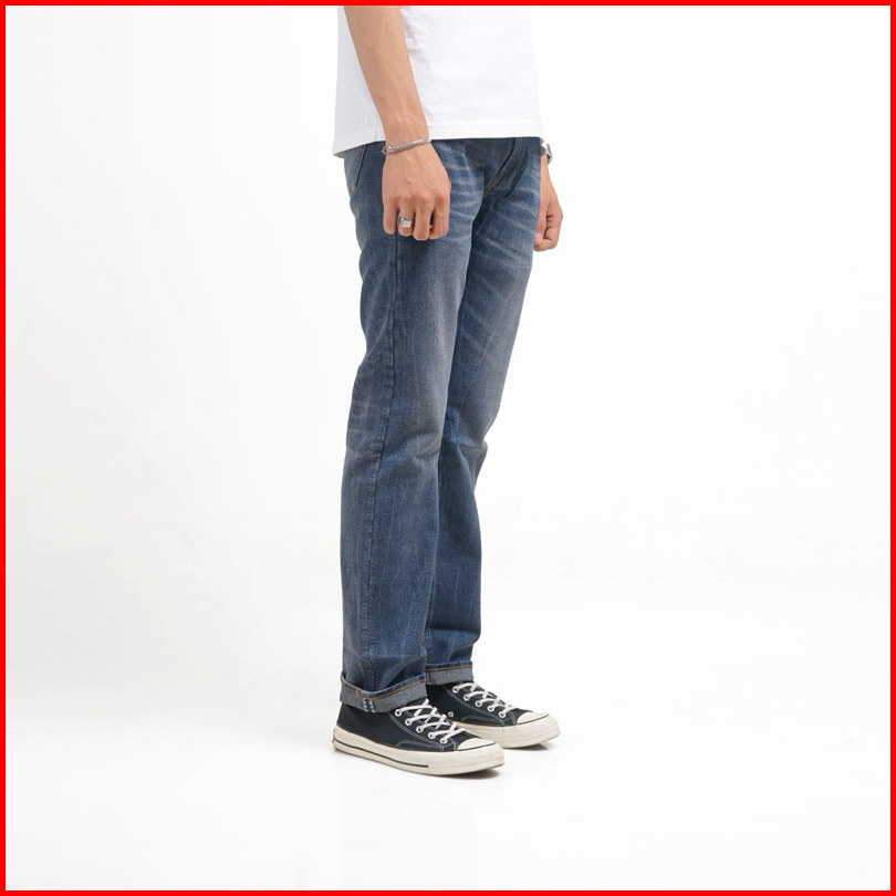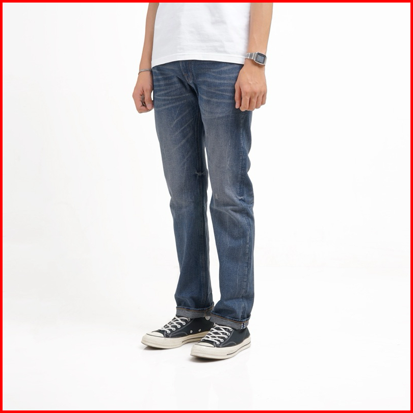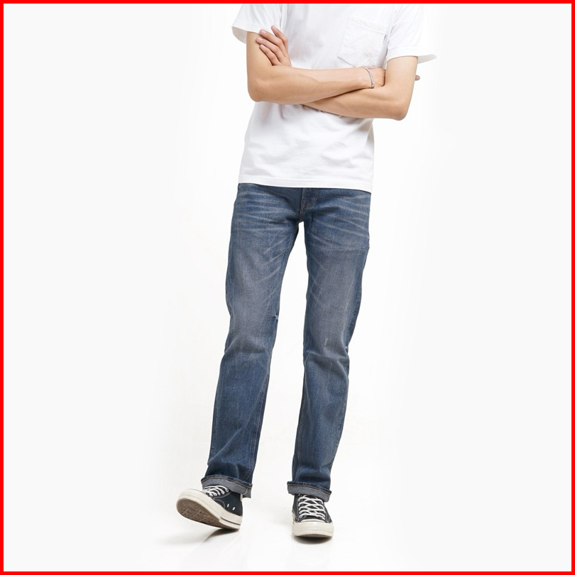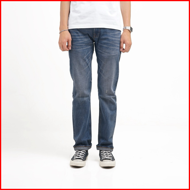 Volkvog Jeans Malaga Celana Panjang Washed Denim Pria Slim Straight Biru