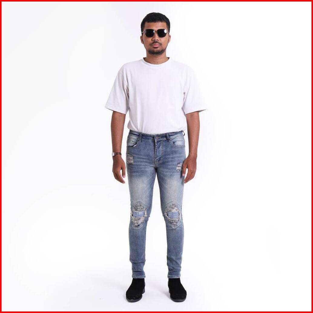 Weird Jeans - Blue Sky Ripped - Celana Jeans Panjang Pria Slimfit Ripped Jeans Stretch