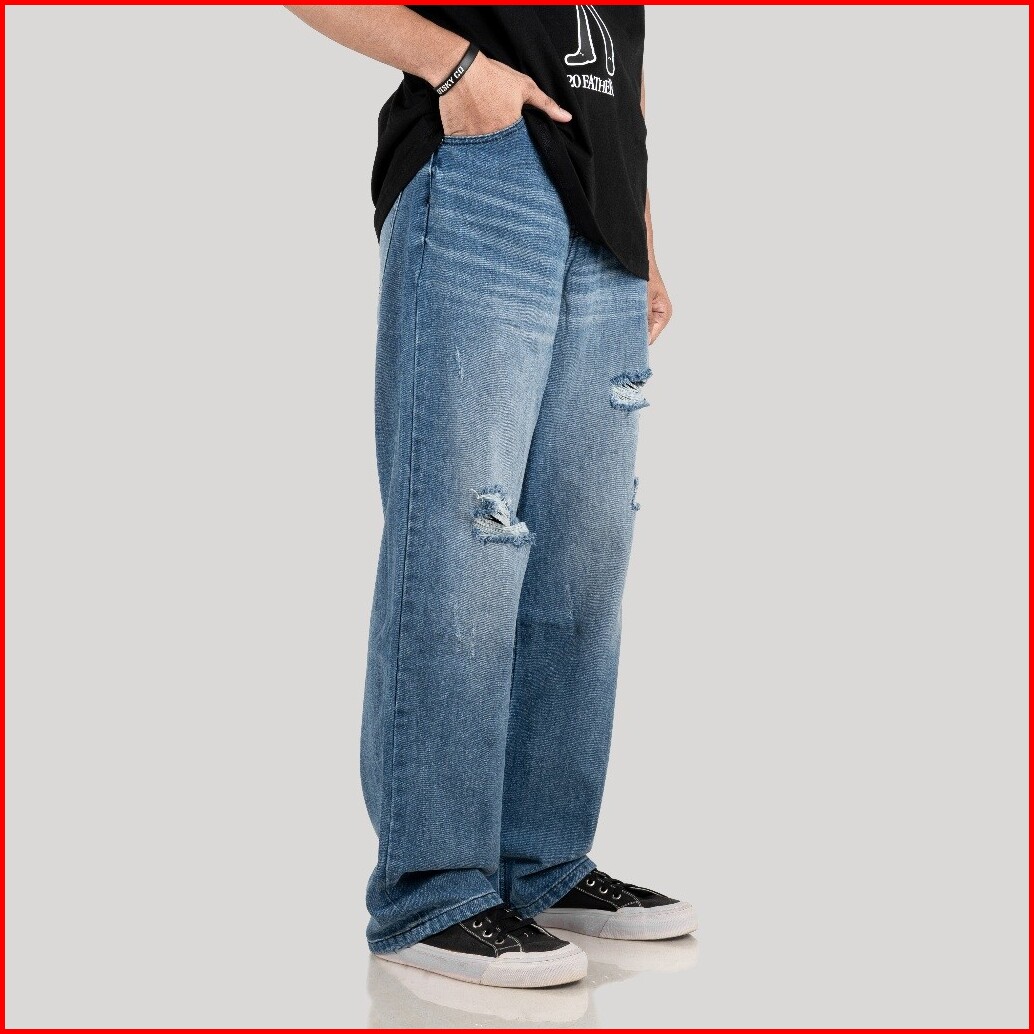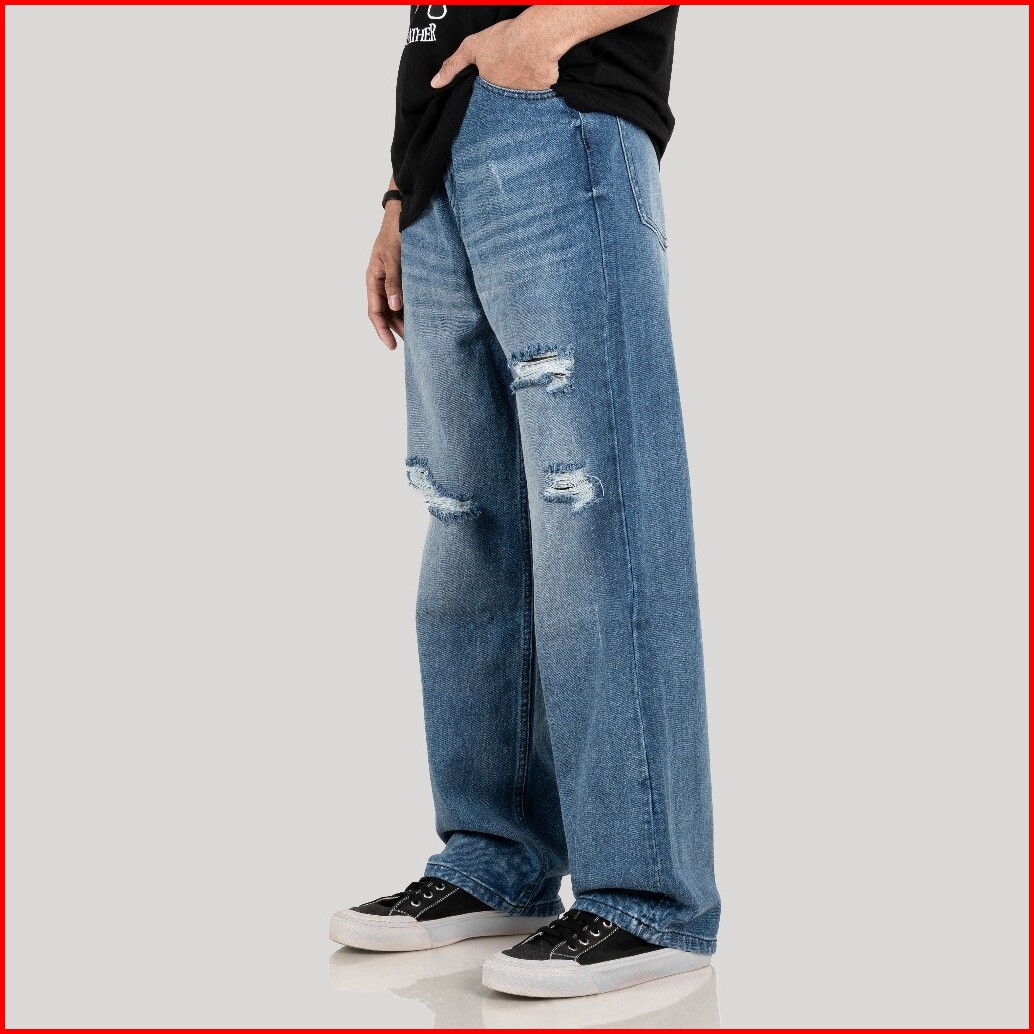 420father X Otsky Cavier Celana Jeans Pria Denim Osaka Ripped Light Blue Loose Fit