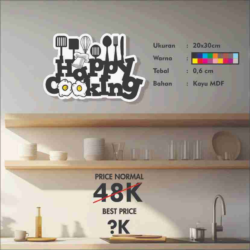KKUMI DK8 Dekorasi Pajangan Hiasan Dinding dapur senang masak Happy Cooking Ukiran Kayu 30x20 Cm