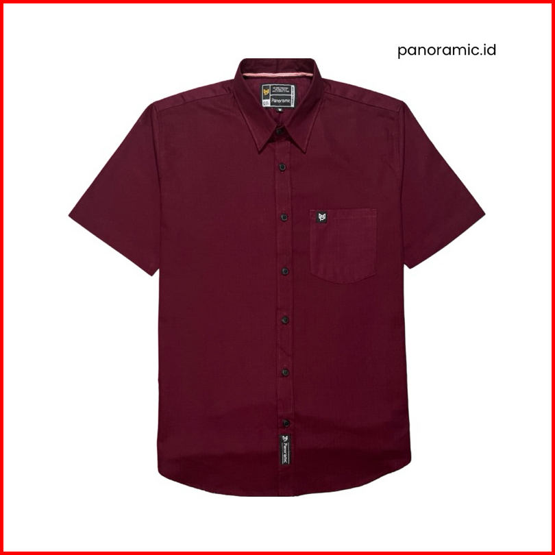 Panoramic - Short Sleeves Shirt Maroon Kemeja Polos Pria Lengan Pendek Casual Slimfit