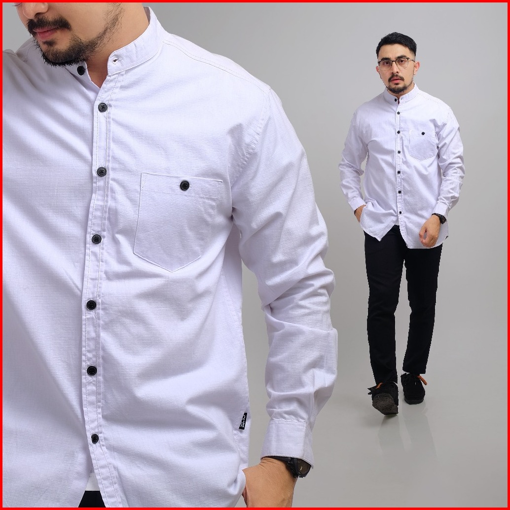 Dgm Kemeja Polos Pria Lengan Panjang Kerah Sanghai Koko Putih 1016