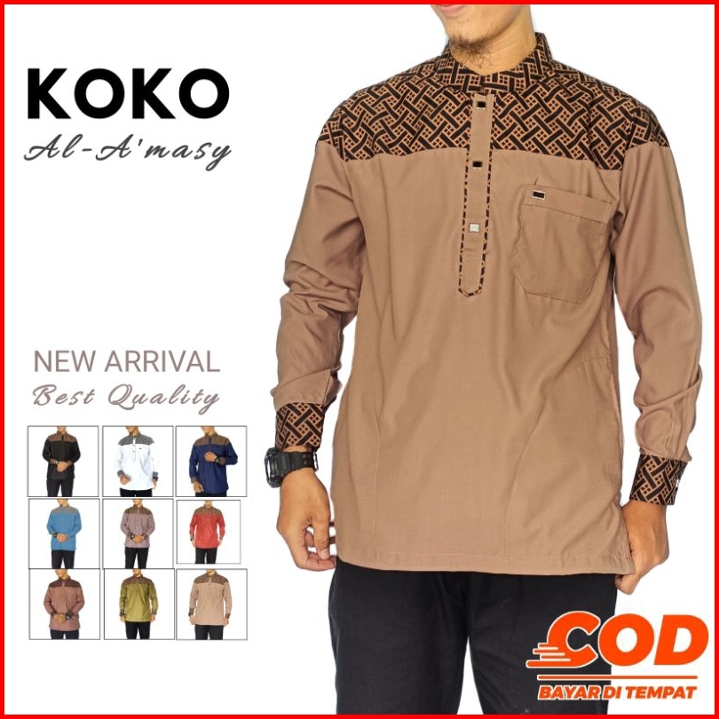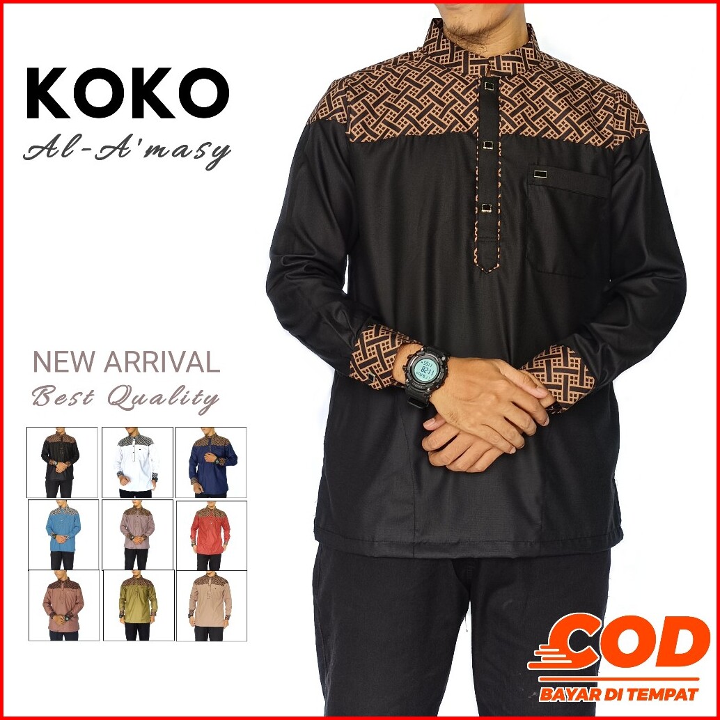 Baju Koko Pria Lengan Panjang Warna Army Brown Mocca Black Hitam Premium Koko Batik Kemko Tangan Panjang Ini