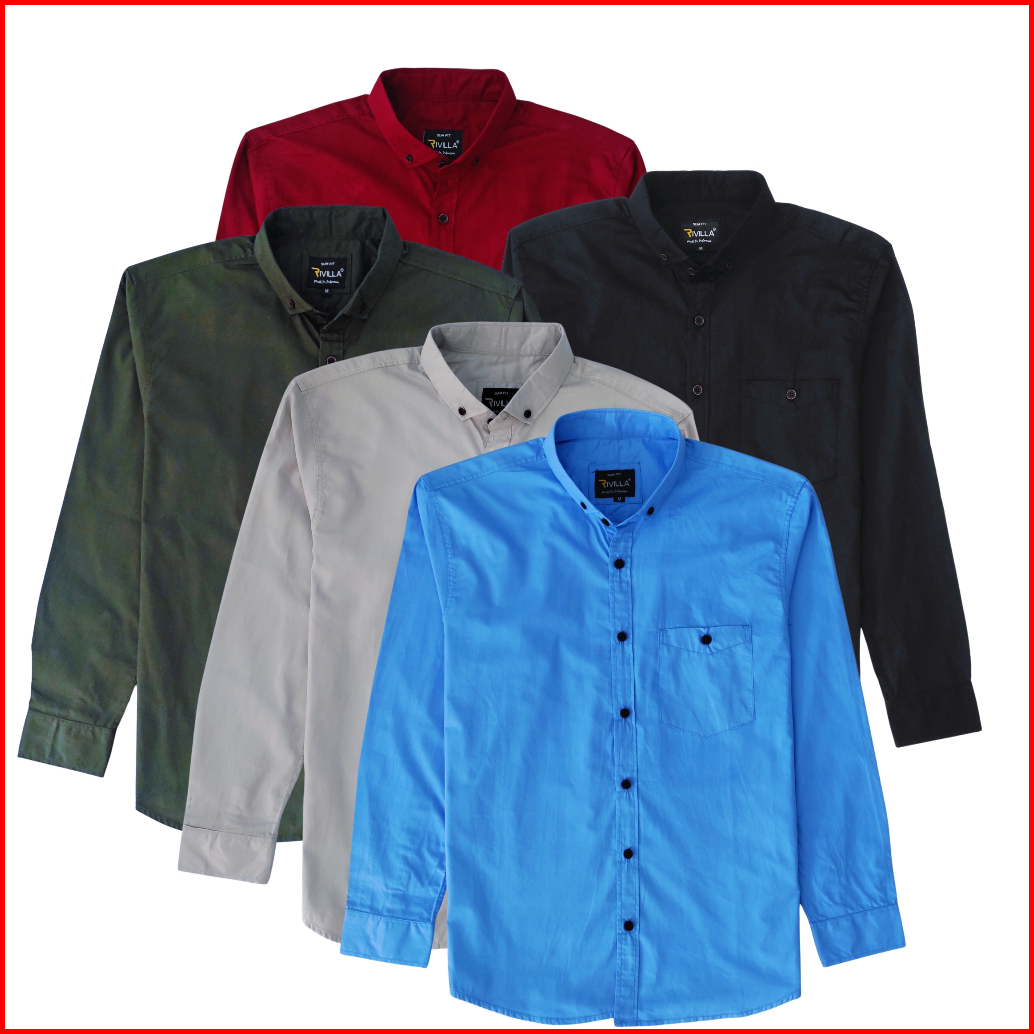 Kemeja Pria Polos Lengan Panjang Katun Premium Slim Fit