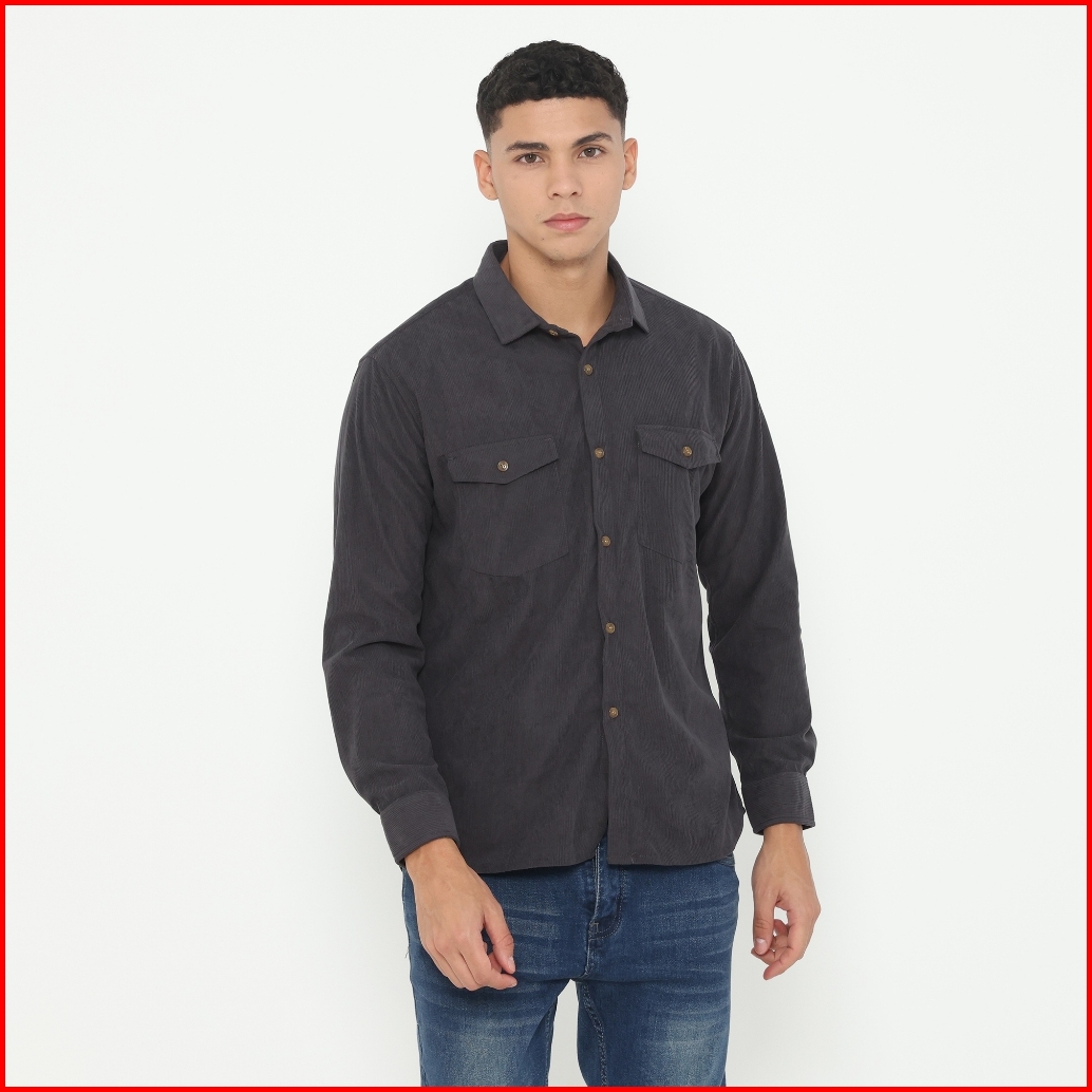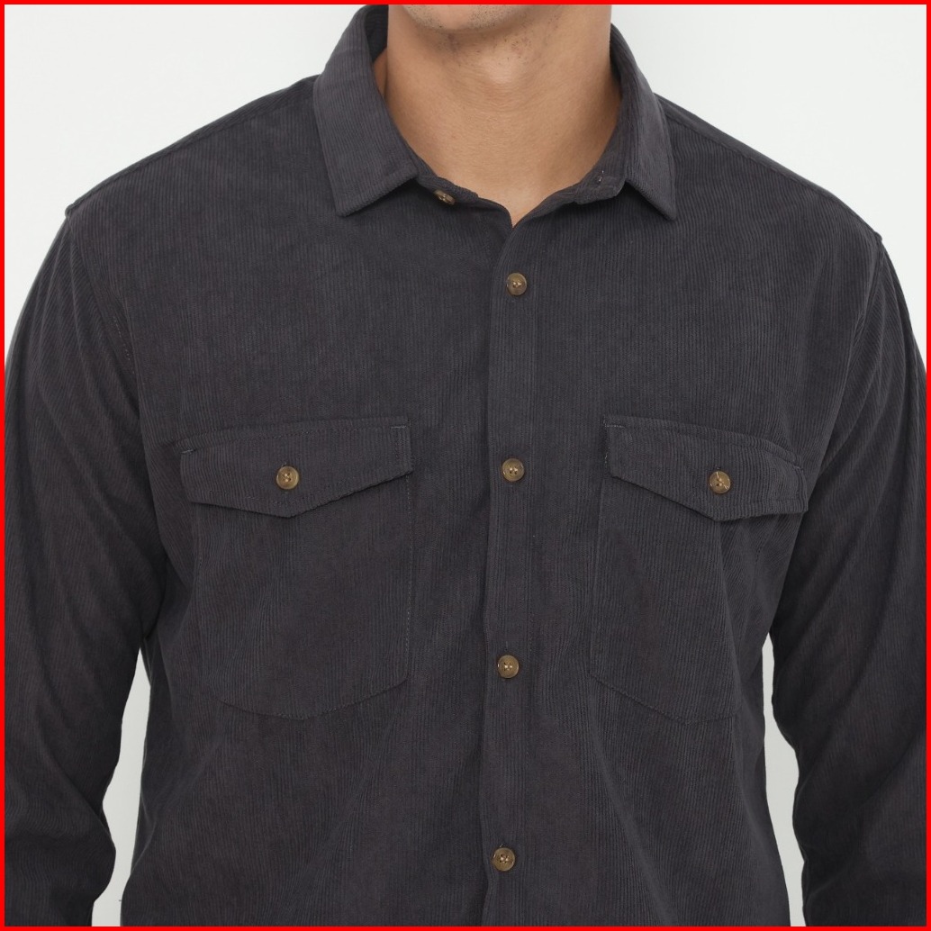 Dancus Kemeja Polos Pria Kodorai Lengan Panjang Kantong Dua Warna Abu Tua Olr819