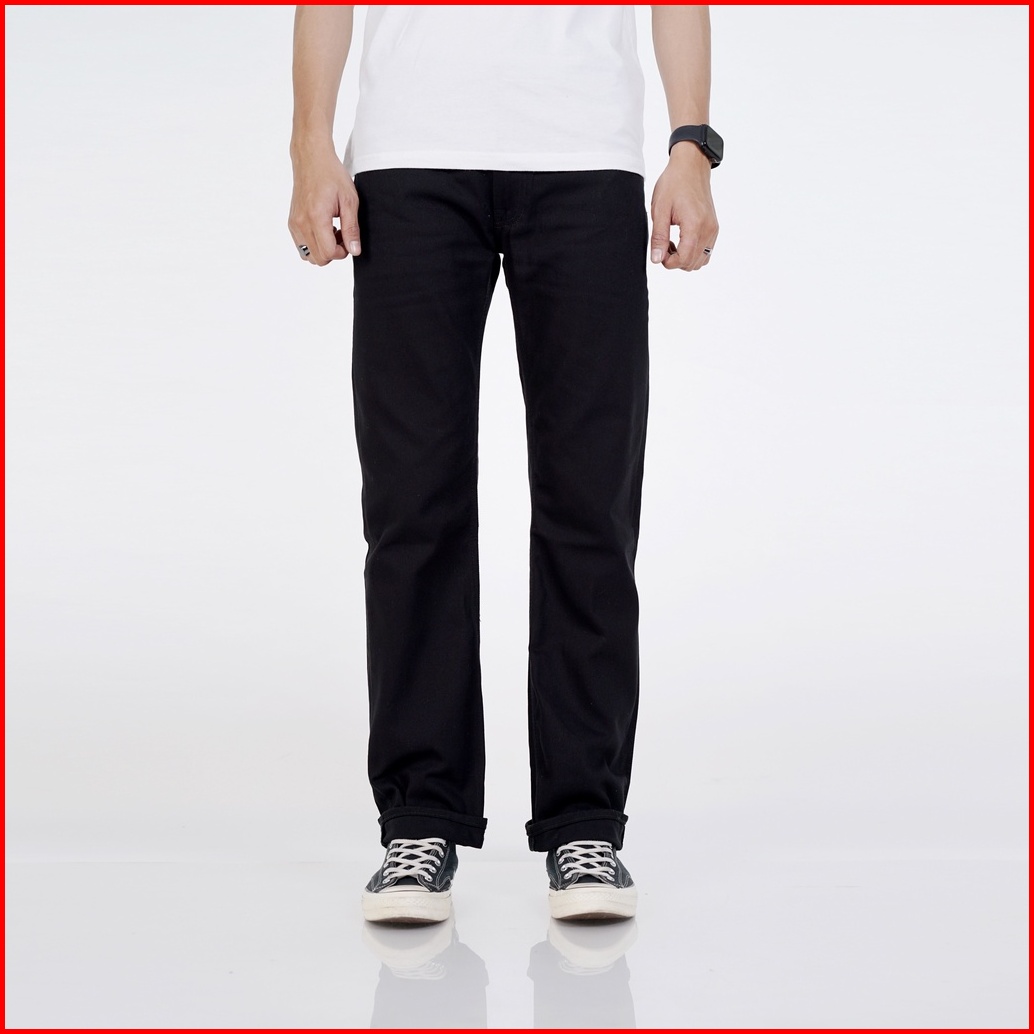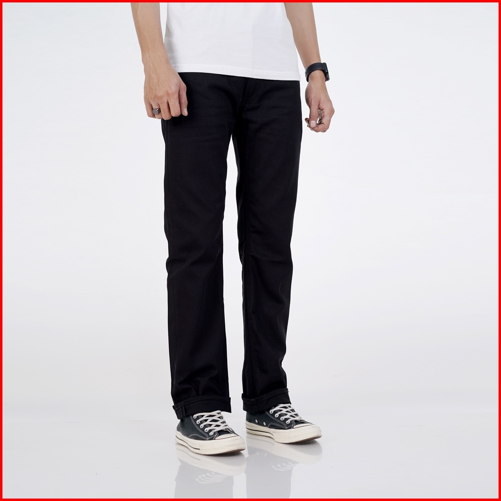 Volkvog Jeans Barbados Straight Celana Panjang Raw Denim Pria Slim Straight Hitam