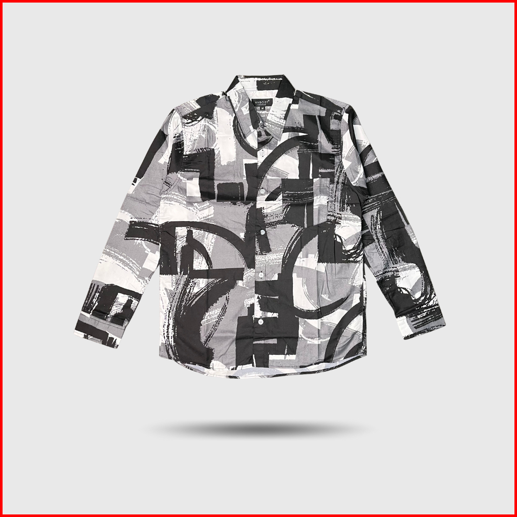 Kybost Mik Katun Kemeja Pria Lengan Panjang Motif Casual Premium
