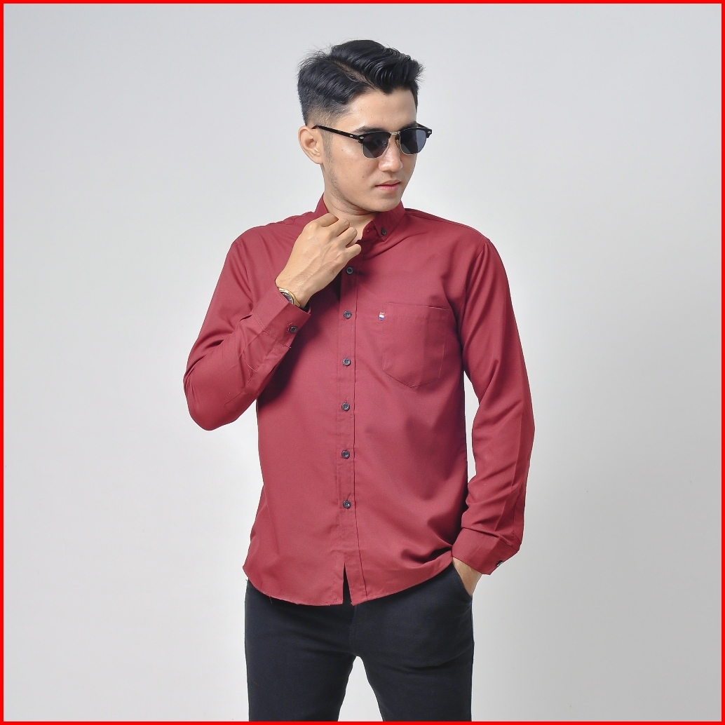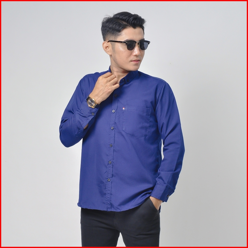 Nzl - Kemeja Polos Pria Army Lengan Panjang