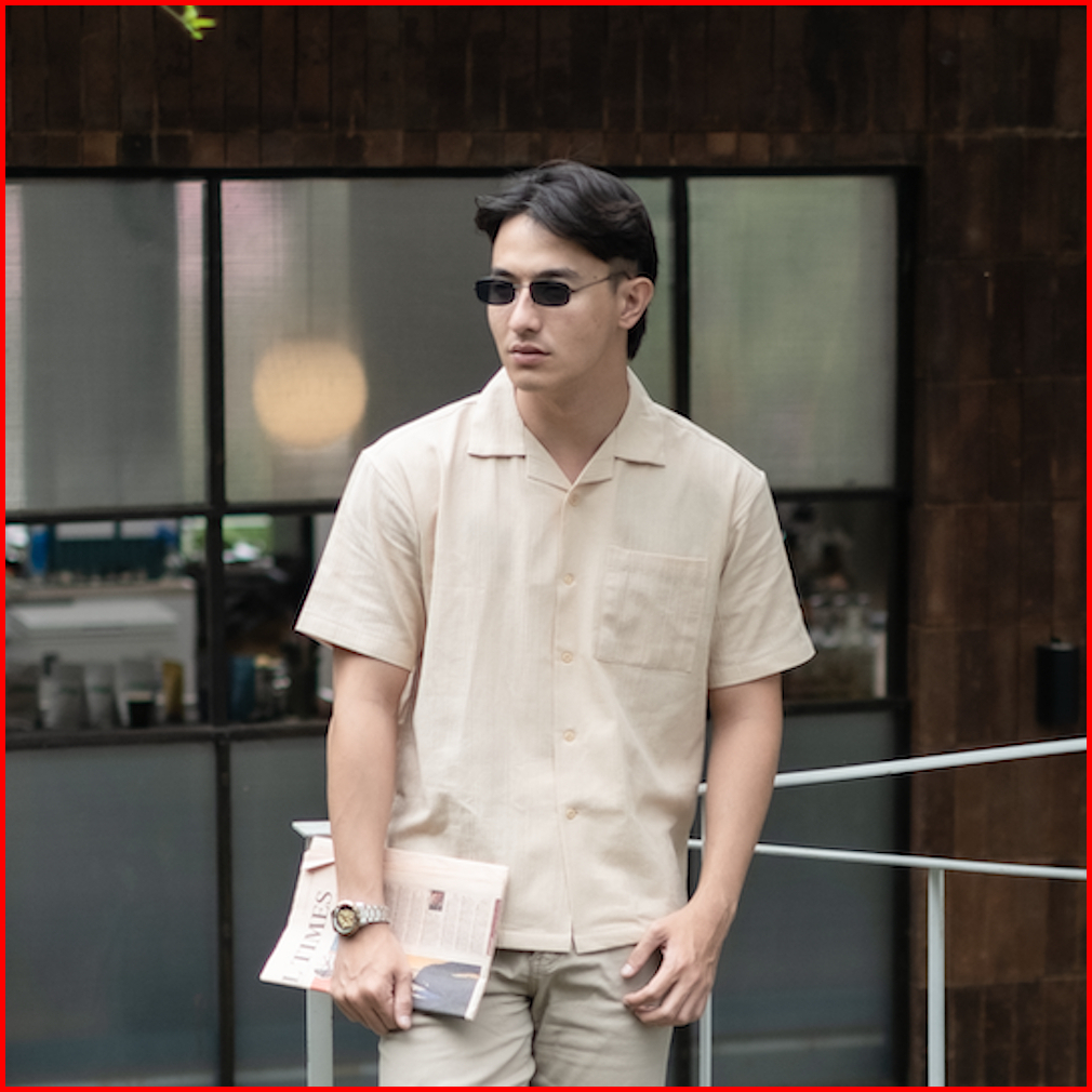 Cottongo Kemeja Open Collar Linen Cuban Bowling Oversized Shirt Dark Brown