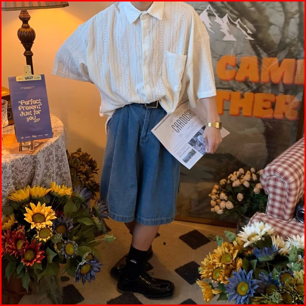Kemeja Lengan Pendek Japanese Style - Design Lubang-lubang Lux Viral Kekinian