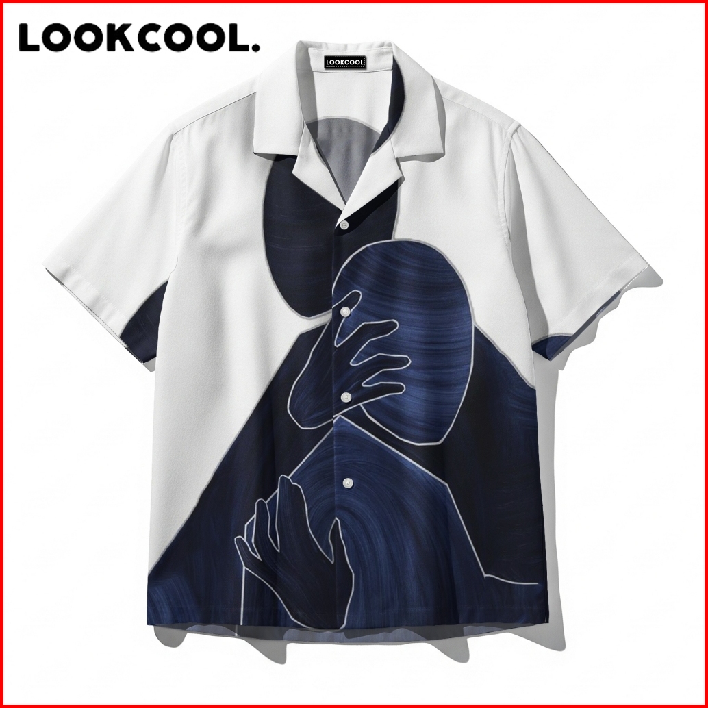 Lookcool Kemeja Putih Artistik Motif Siluet Pelukan Gaya Minimalis