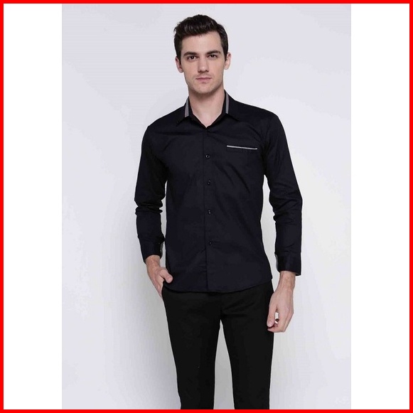 Fortklass Raffi Hitam Kemeja Polos Pria Lengan Panjang Formal Slimfit Cowok