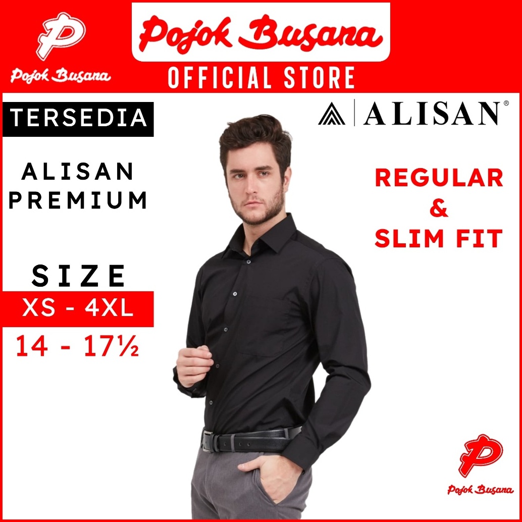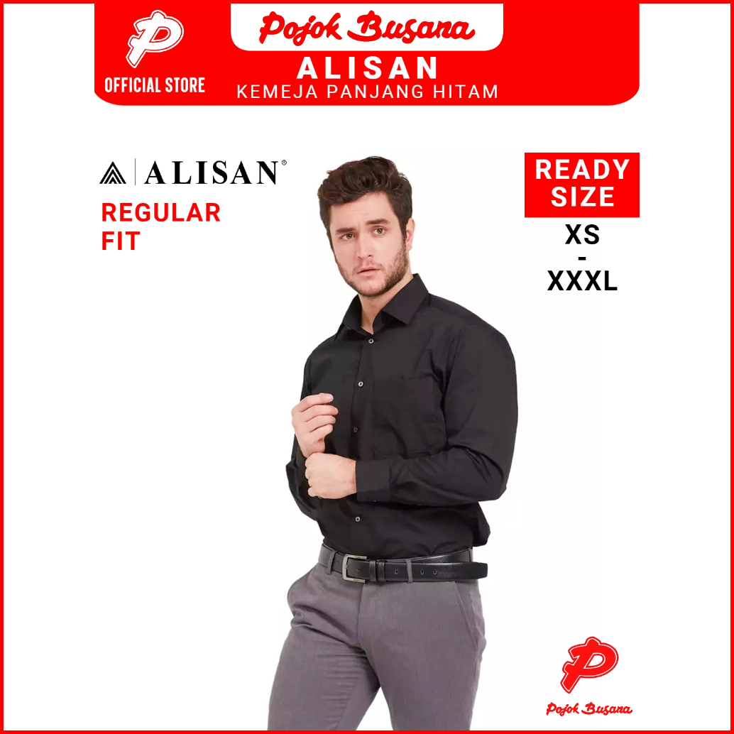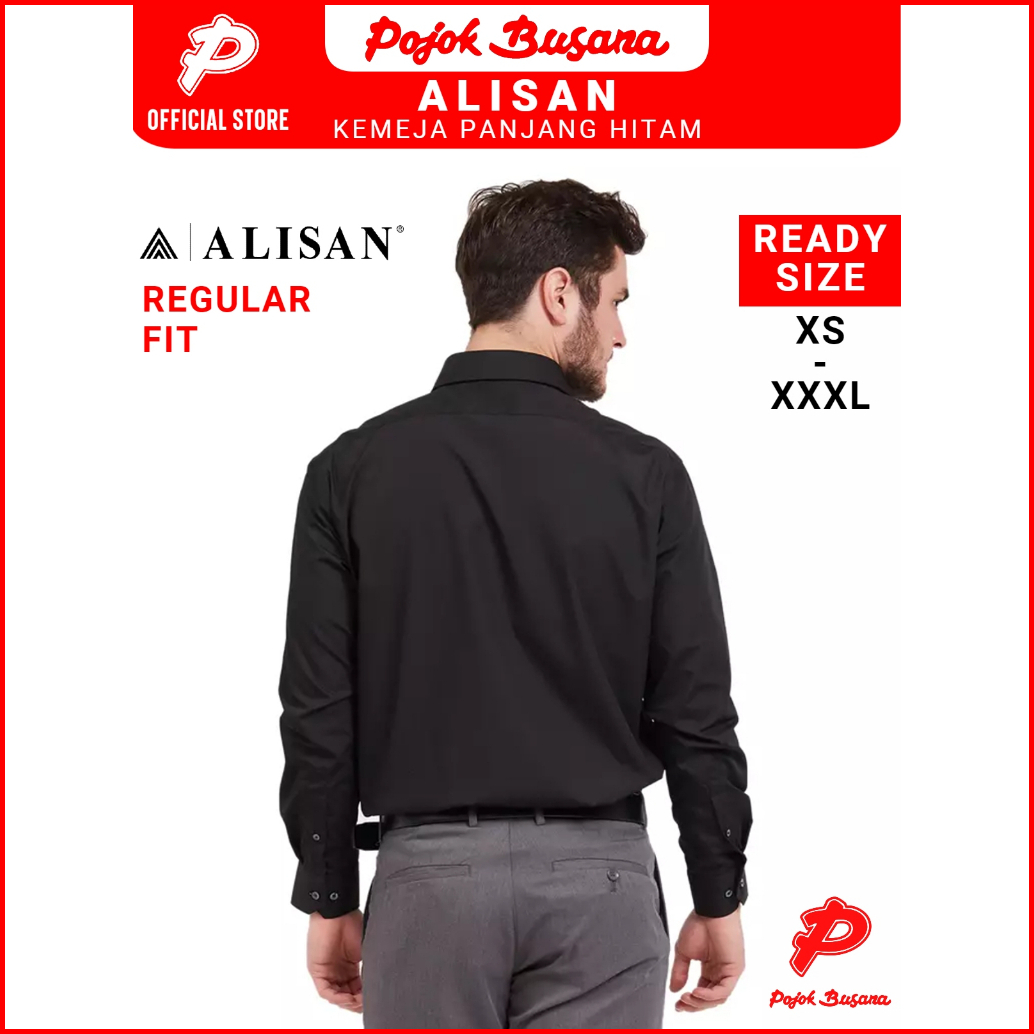 Pojok Busana Alisan Kemeja Lengan Panjang Polos Pria Reguler Fit Slim Fit Hitam-black