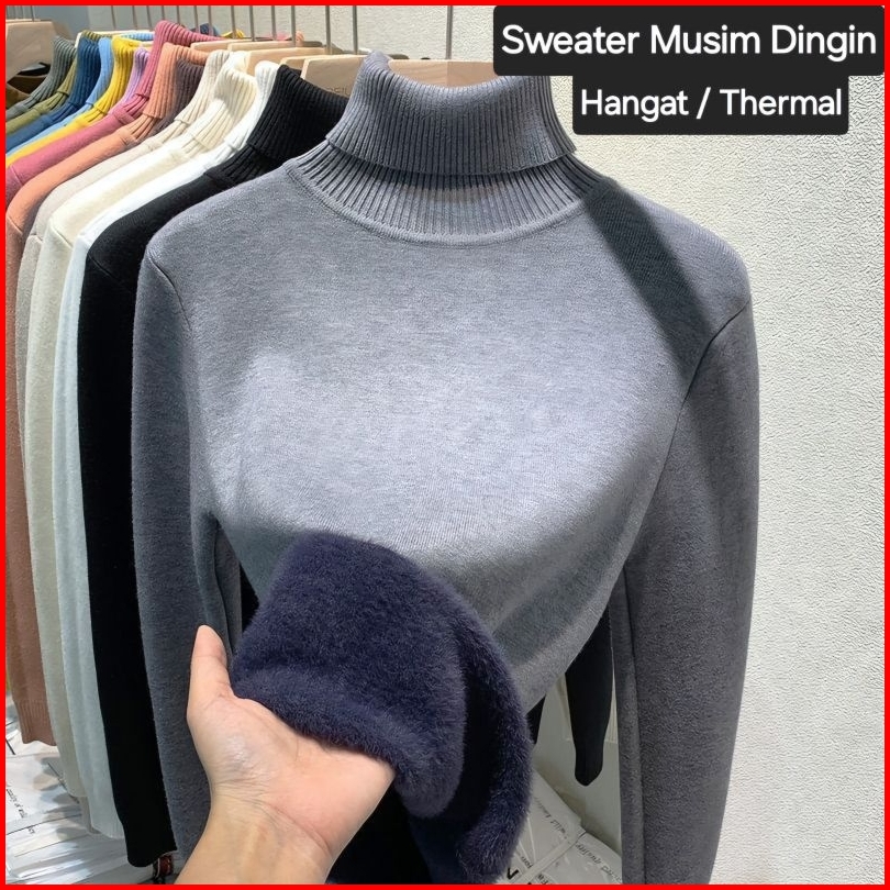 Long John Wanita Pakaian Musim Dingin Atasan Saja Turtleneck Sweater Wanita Thermal 015