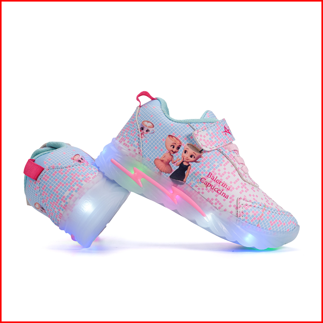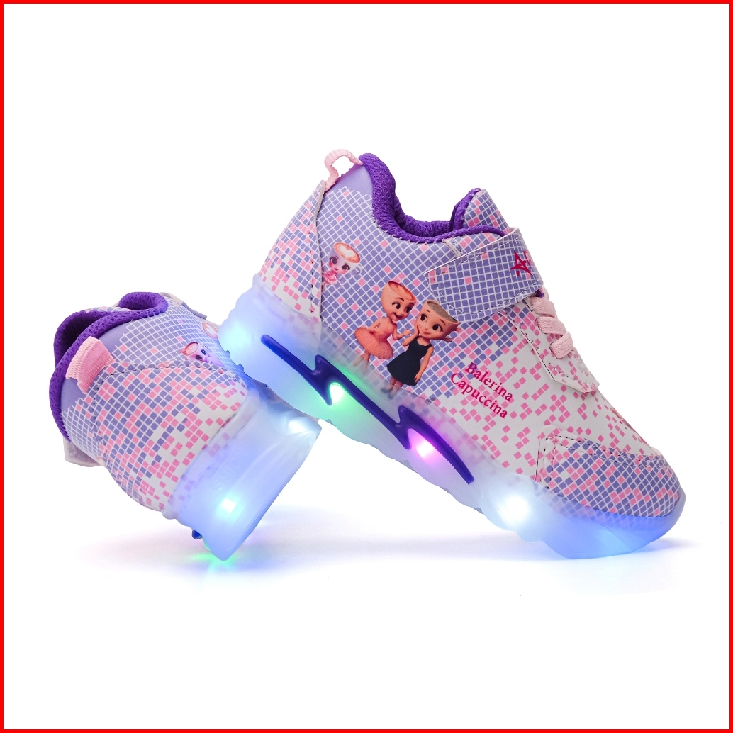 Arkana - New Sepatu Lampu Led Anak Perempuan Model Sneakers Gambar Balerina Capucina Karakter Jibbitz Balerina Capucina